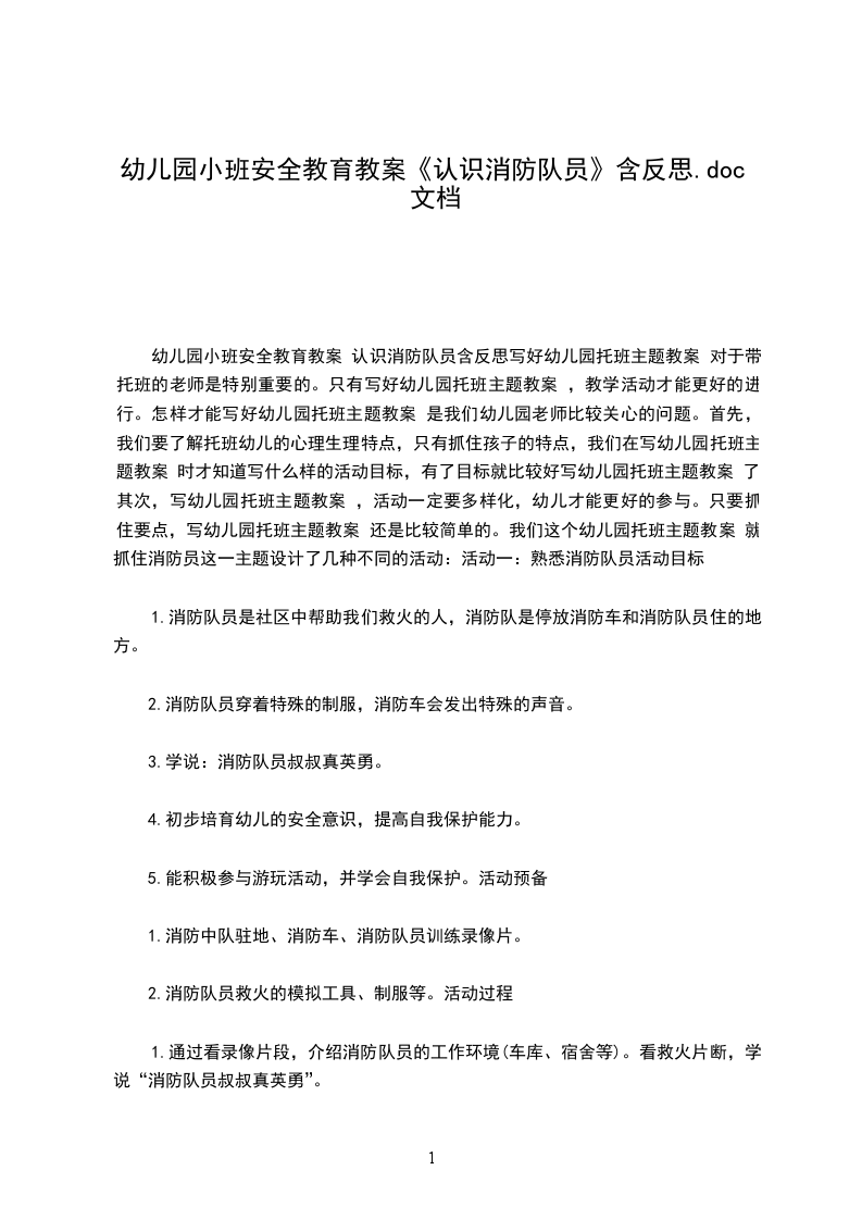 幼儿园小班消防安全教案我是小小消防员含反思活动目标: