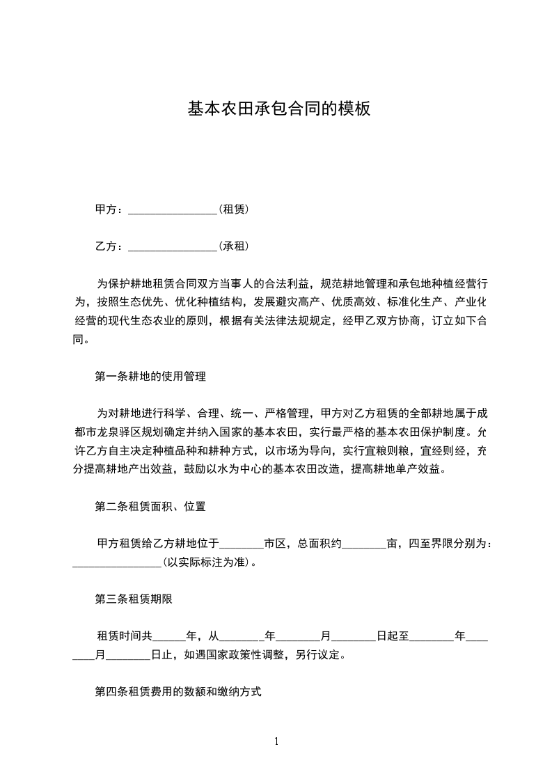 为保护耕地租赁合同双方当事人的合法利益,规范耕地管理和承包地种植经营行为,按照生态优先、优化种植结构,发展避灾高产、优质高效、标准化生产、产业化经营的现代生态农业的原则,根据有关法律法规规定,经甲乙双方协商,订立如下合同。