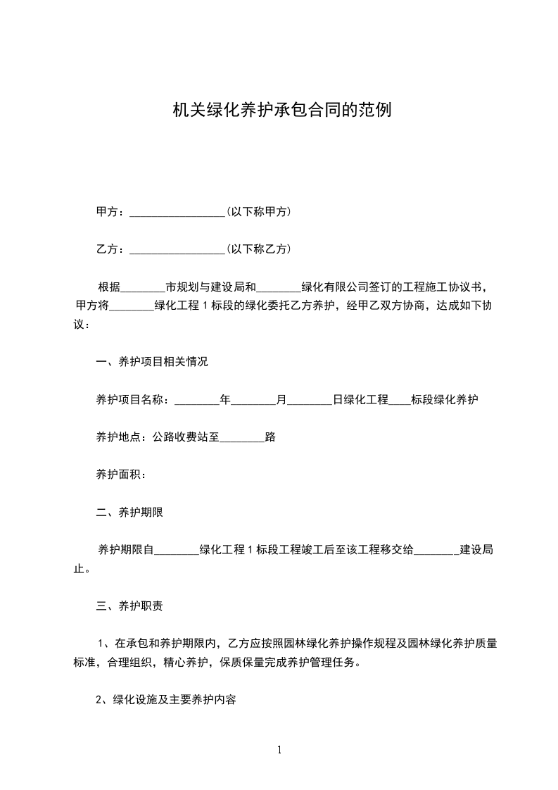7、根据协议书的养护项目,三年养护经费为 ________绿化工程_____标段竣工后工程量(即_________元)的____%,合计养护费大写___________________元整,小写________元,承包方式为全额经济责任制承包。