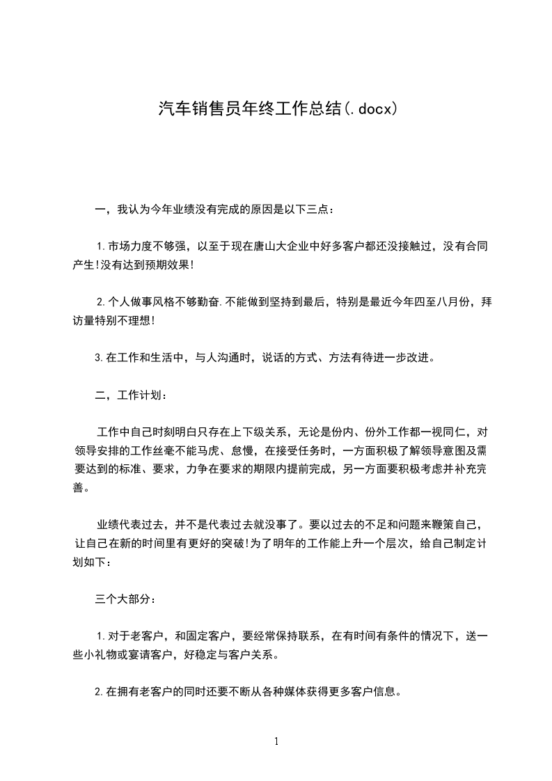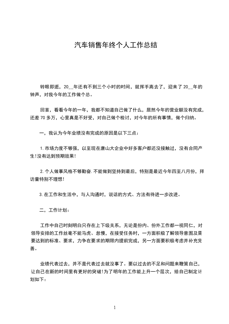 三、明年的个人目标一个好的销售人员应该具备:好的团队、好的人际关系、好的沟通技巧、好的销售策略、好的专业知识、还有一条始终贯穿其中的对销售工作的极度热情!个人认为对销售工作的热情相当重要,但是对工作的热情如何培养!怎么延续?把工作当成一种手段而不是负担工作也是有乐趣的,寻找乐趣!通过2024年的工作和学习,我已经了解和认识到了一些,我们有好的团队,我们工作热情,我们可以做到也一定能做到!我明年的个人目标是400万,明年的现在能拥有一辆属于自己的车(4万7万)!一定要买车,自己还要有5万元的资金!我相信自己能够成功,为自己的目标而奋斗!加油!汽车销售个人2024年终工作总结范文