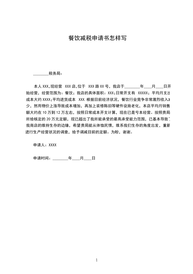 本人XXX,现经营XXX店,位于XXX路XX号,我店于________年____月____日开始经营,经营范围为:餐饮;我店的具体面积:XXX;日常开支有XXXXX;平均月支出成本大约XXXX;平均进货成本XXX.根据目前经济状况,餐饮行业竞争非常激烈收入减少,然而物价上涨导致成本增加,再加上装修陈旧等硬件设施老化,本店平均月销售额大约在10万到12万左右,按照日常成本开支计算,现在已是亏本经营。按照贵局所给核定的20万元定额,现已超出了我所能承受的最高承受能力范围,已基本导致了我商店的维持生存的边缘,希望贵局能从体恤民情,维系我们生存的角度出发,重新进行生产经营状况的调查,给予调减目前的定额。为盼,谢谢。