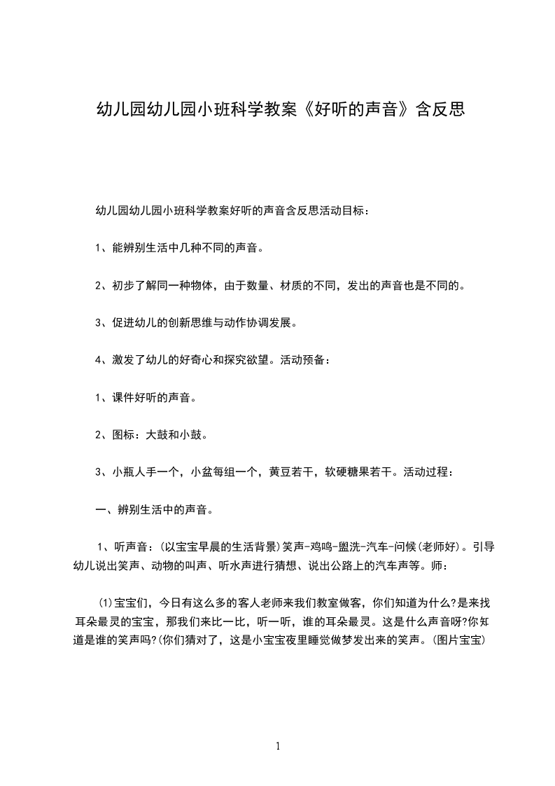 幼儿园幼儿园小班科学教案好听的声音含反思活动目标: