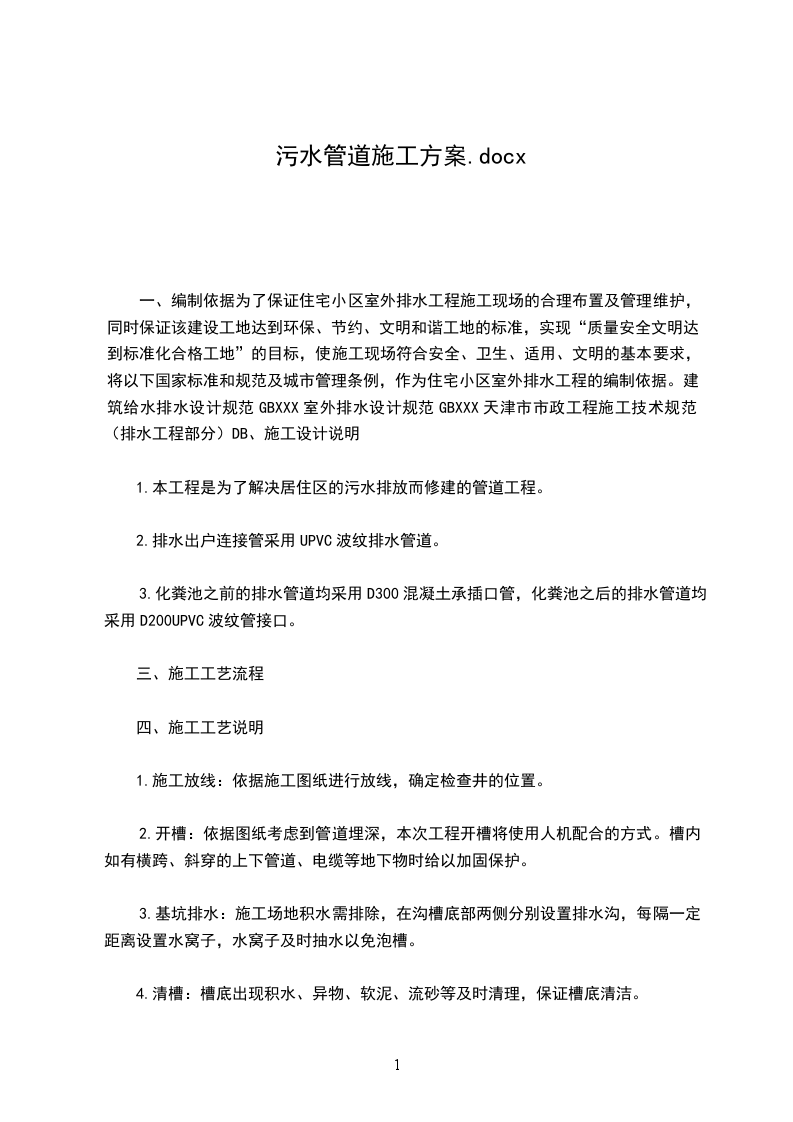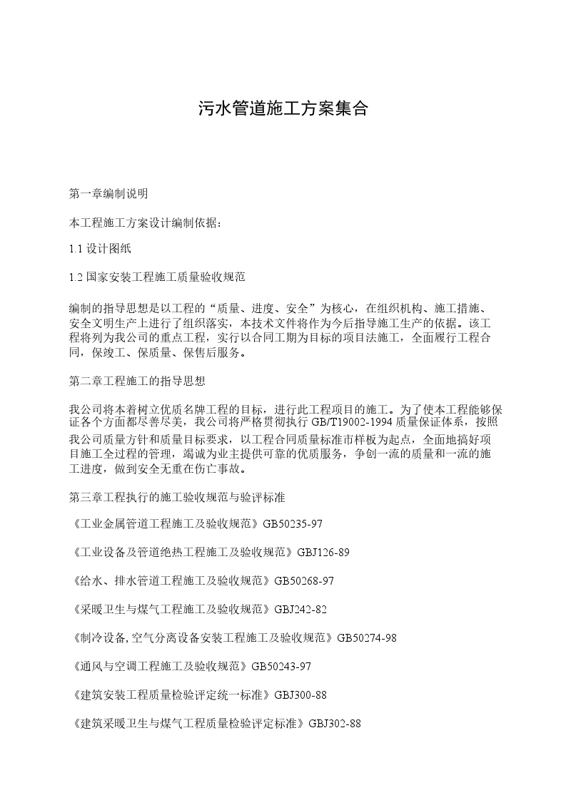 (三)、管道施工的质量工期保证措施根据本区域雨污水管道工程施工的特点,在施工过程中除强化管理,确保质量保证体系正常运行外,技术上也要采取相应的措施,使工程质量和工期有一个充分的保证。主要采取