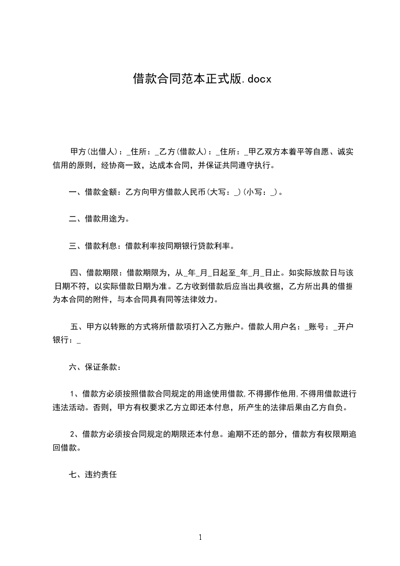 甲方(出借人):_住所:_乙方(借款人):_住所:_甲乙双方本着平等自愿、诚实信用的原则,经协商一致,达成本合同,并保证共同遵守执行。
