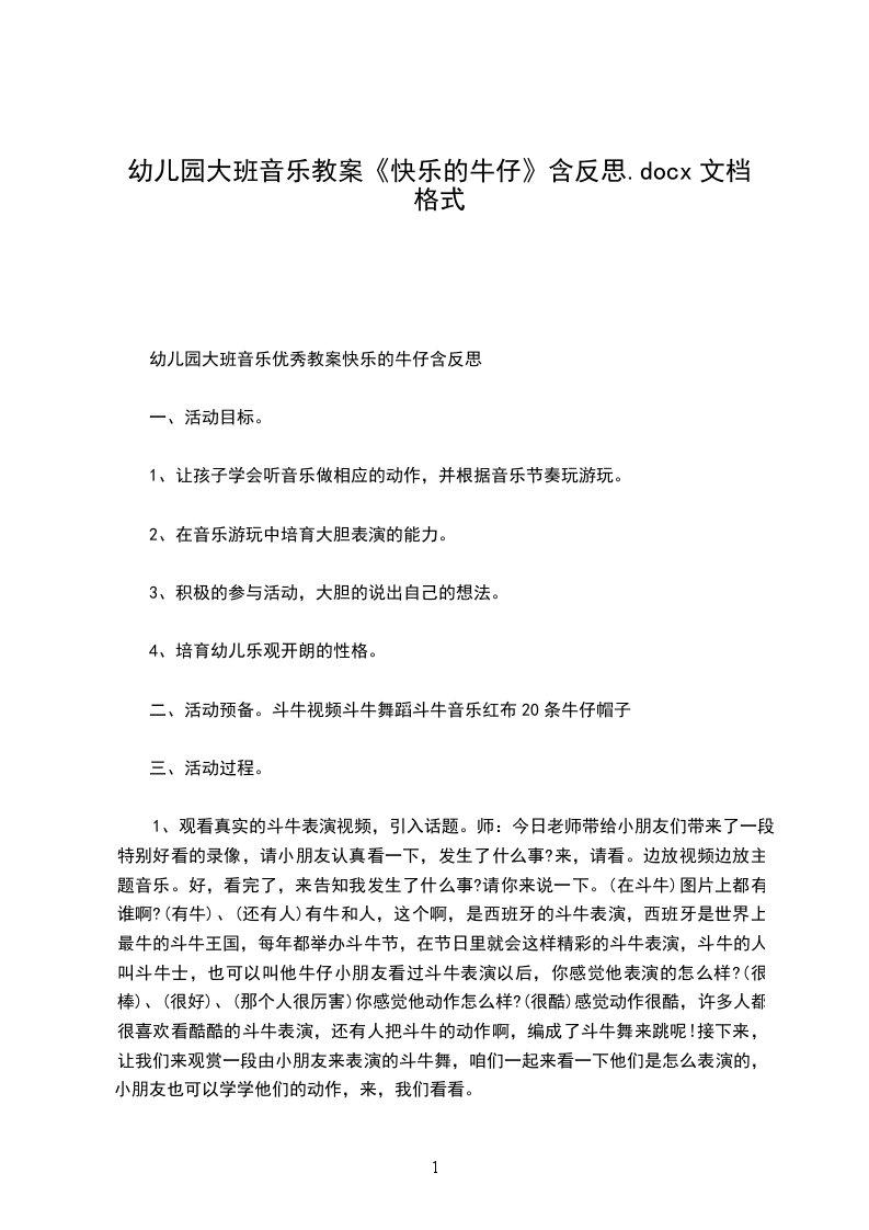 幼儿园大班音乐优秀教案快乐的牛仔含反思