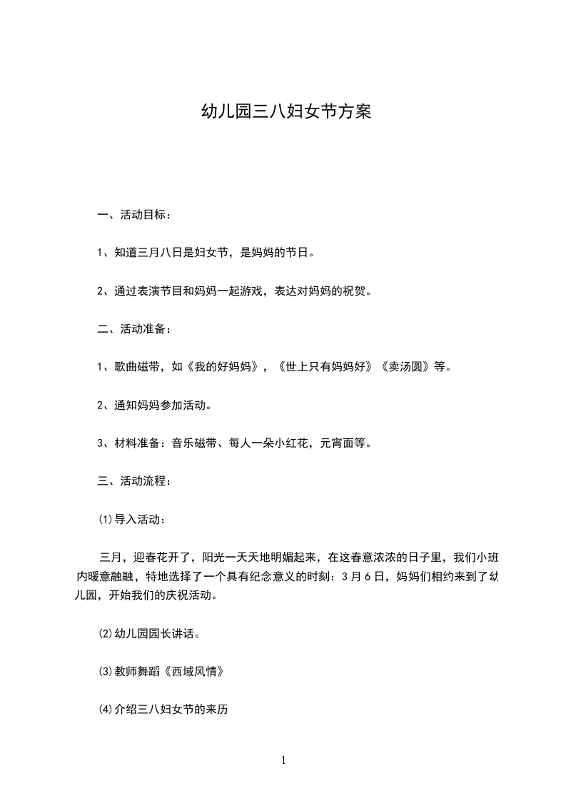 1、使幼儿了解3月8日是全世界劳动妇女的节日,幼儿园三八活动方案。