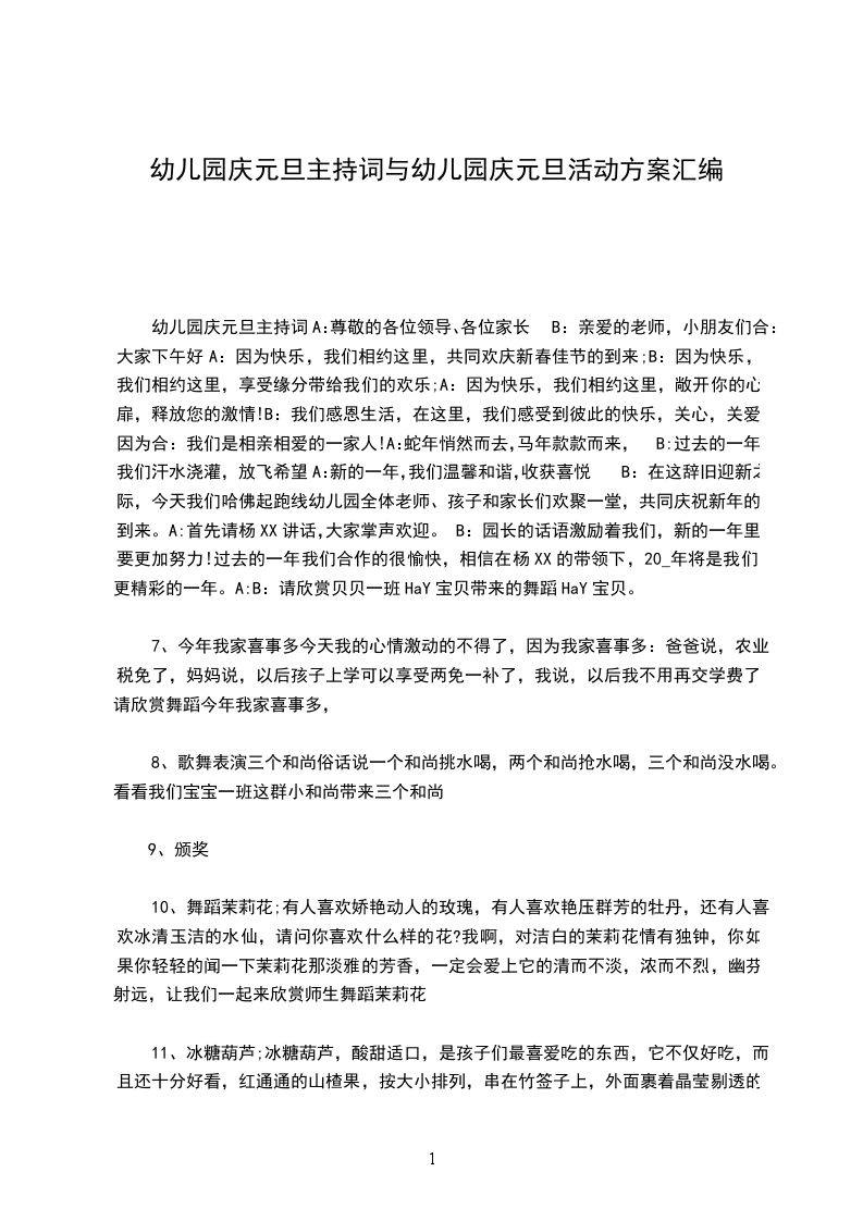 2、让幼儿感受新年的欢乐和喜悦。开展活动:20__年已渐渐离我们远去,20__年正悄悄来临。欢迎家长们来参加今天的“庆元旦家园同乐活动”,值此喜庆的日子,我们恭祝大家新年好!新的钟声新的一年新的祝福新的期待在这辞旧迎新之际,我们给大家拜年了。祝大家:新年快乐,合家幸福!