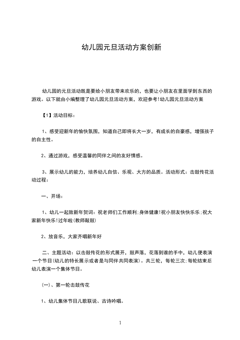【2】为了迎接一年一度的元旦,让我们的孩子和家长感受节日的喜庆,我班设计了一系列活动方案,目的是让孩子和家长们共同参与,促进亲子交流,让孩子们在幼儿园度过一个愉快而又有意义的元旦!活动目的: