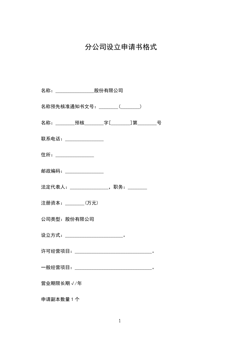 分公司名称:________________