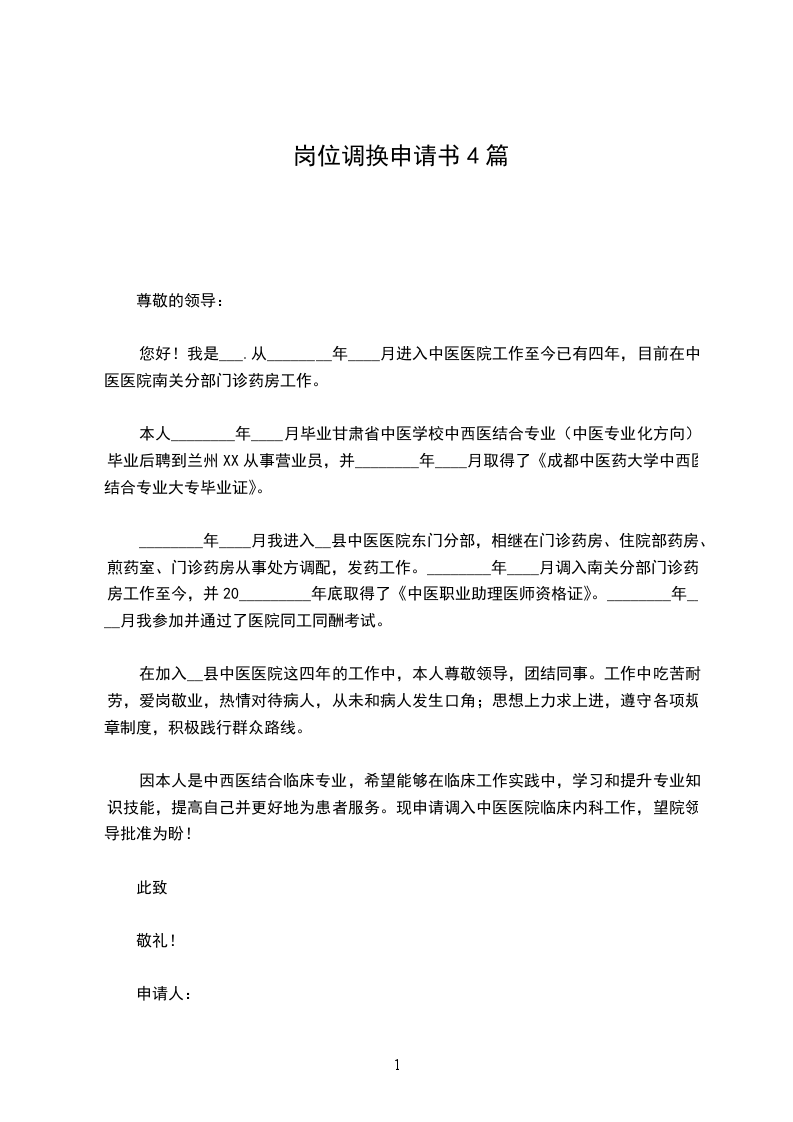 个人岗位工作调动申请书理由大全岗位调动申请书