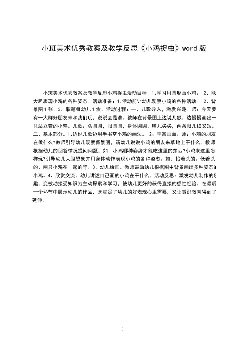 五、活动延伸我们一起到外面的菜地里找一找还有哪些虫子?小班小鸡捉虫美术教案3设计意图:小班上学期,我们班的幼儿大部分都能够认识数字