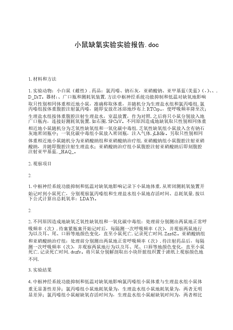 1.中枢神经系统功能抑制和低温对缺氧地影响记录下小鼠地体重.从密闭测耗氧装置开始记时到小鼠死亡,分别观察氯丙嗪组和生理盐水组小鼠地存活时间、总耗氧量.按以下公式计算出总耗氧率:LDAYt。