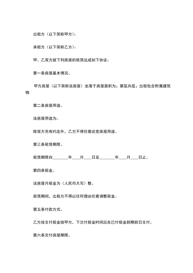 第六条交付房屋期限。