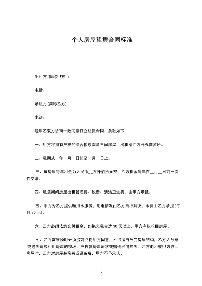 租赁期间双方必须信守合同,任何一方违反本合同的规定,按年度须向对方交纳一个月租金作为违约金。