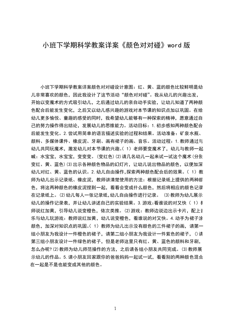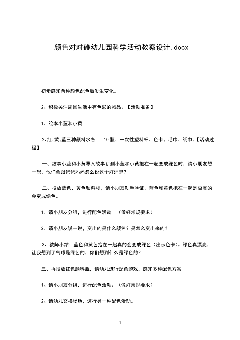 三、结束颜色的变化真好玩,下一次让老师带大家去探索发觉室,去看看颜色还有什么变化。活动反思:颜色,对于幼儿来说是特别喜欢的,本次活动是让幼儿通过自己动手操作,了解到两种颜色混在一起变成另一种颜色,也让幼儿在活动中体验到颜色变化的欢乐,活动开头,我是用魔术师的形式导入课堂,吸引了孩子的留意力,激发了幼儿的兴趣,活动中,让幼儿自己当小魔术师,从而体验魔术师带来的欢乐,之后以爱惜树宝宝,小精灵儿童网站引导幼儿做一个愿意帮助人的好孩子,整节活动达到了活动的目标,让幼儿在实际操作中发展了创造与想象的能力。导入的形式符合幼儿心理特点,就能激发幼儿对活动的兴趣。一节科学活动课,要让幼儿观看,然后有机会说,能说,大胆说,幼儿在先,教师在后。在我的教学活动中还有许多需要改进的地方,在讲解这环节要特别清楚,具体。使自己的教学水平更上一层楼。不足: