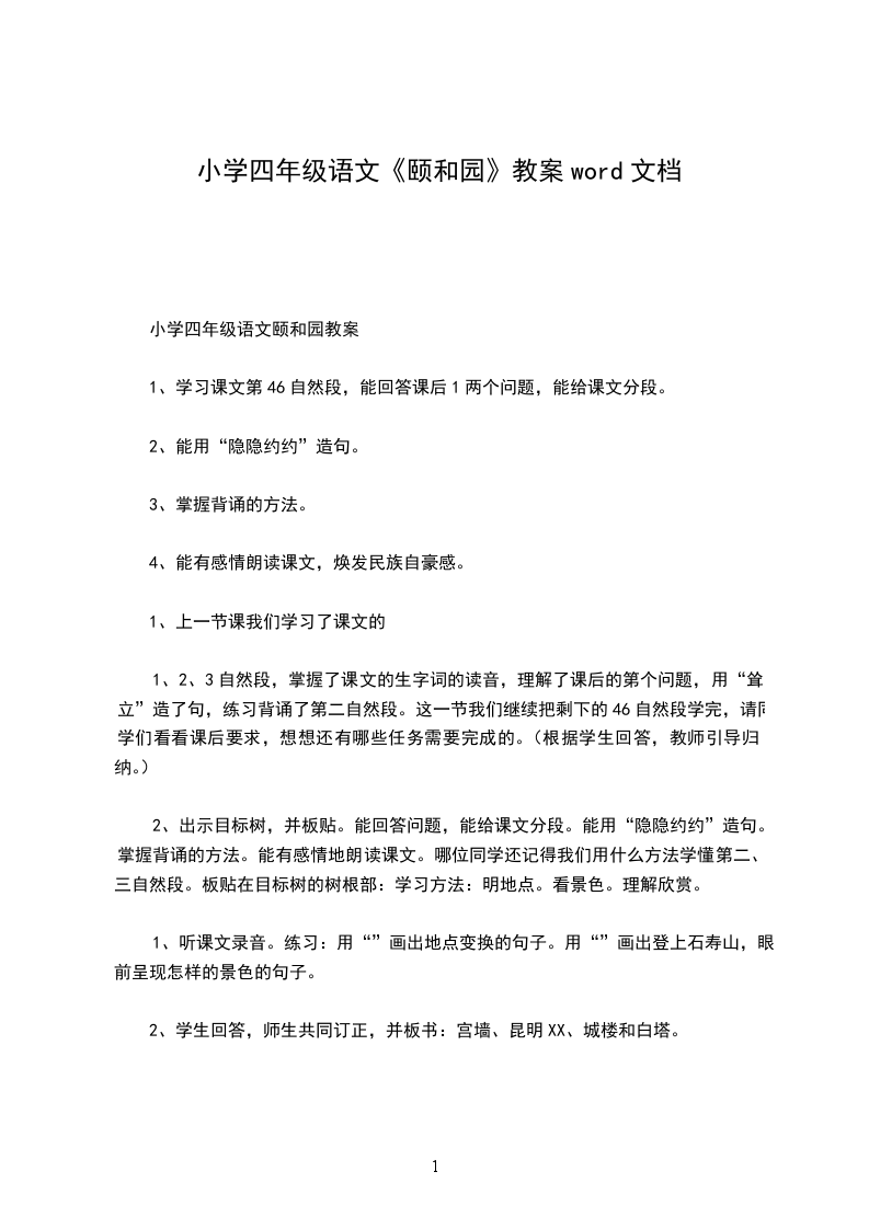 5、口头造句。我们用什么方法背诵第二自然段?板贴在目标树根部分:理清顺序,分层记忆。小学四年级语文颐和园教案由收集及,请说明出处第四自然段有几句话,可分层进行记忆。根据回答归纳,第四自然段有五句话,可分四层记忆:第1句:交待地点,总概括。第2句:向下望。第3、4句:向前望。第5句:向东远眺。自由分层练习背诵。在造句本上,用“隐隐约约“造句。背诵课文第四自然段。