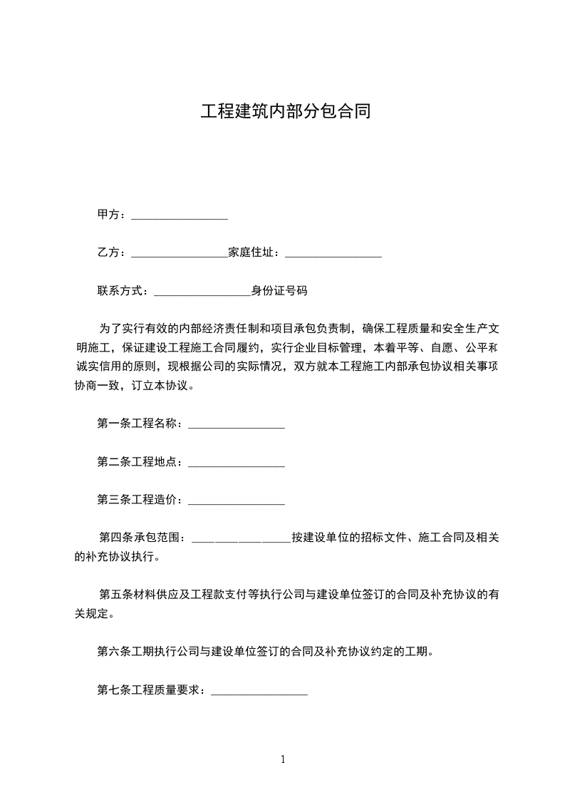 建筑工程内部经济承包合同书甲方:乙方:签订日期:年月日甲方;乙方;