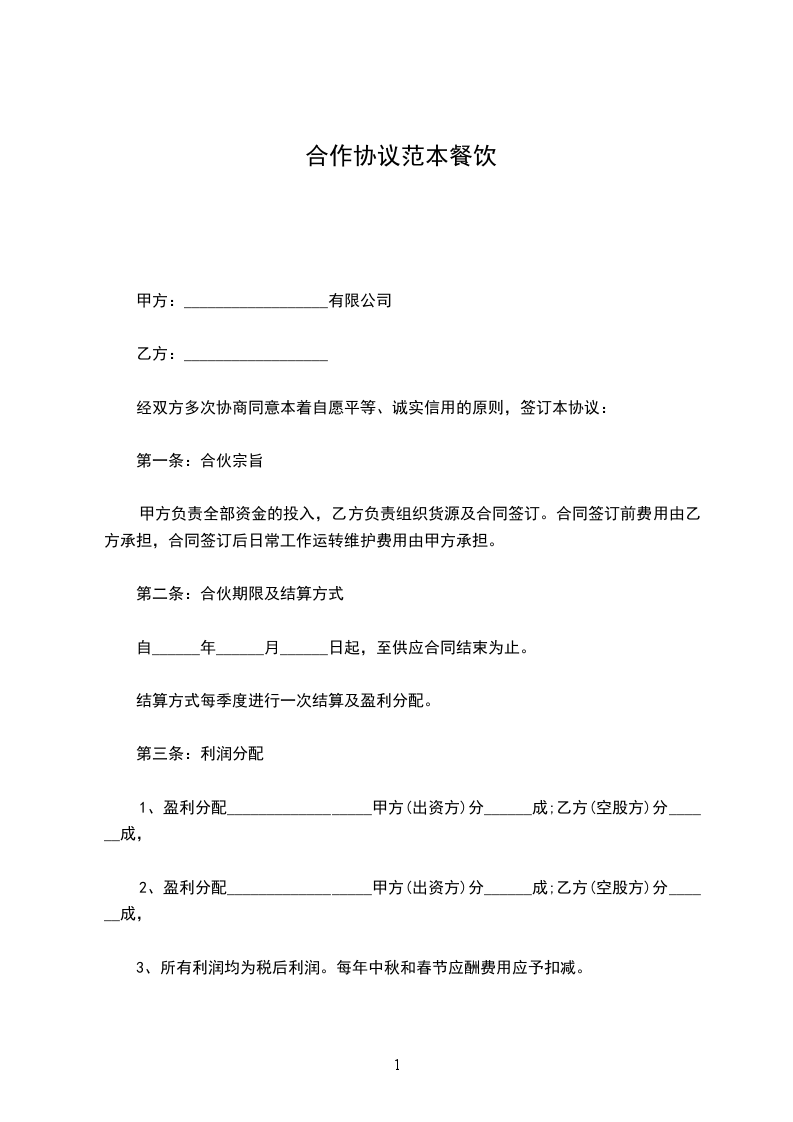 甲、乙双方经友好协商,就共同经营________________________事宜达成如下合伙协议: