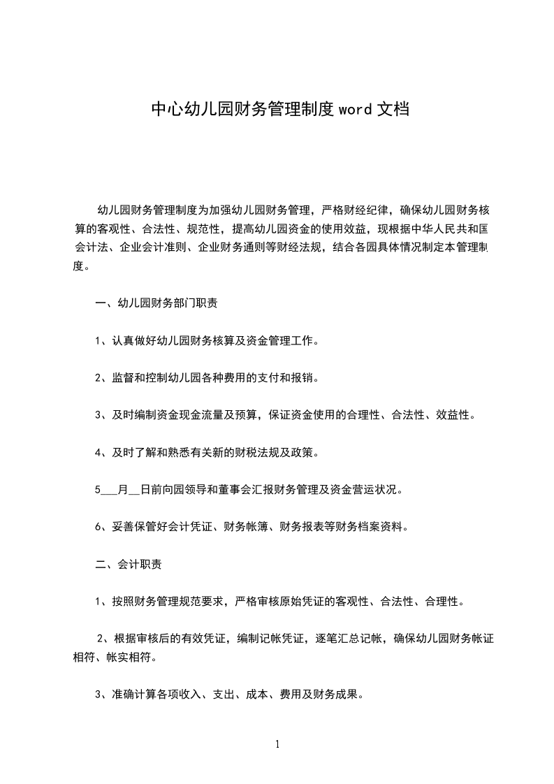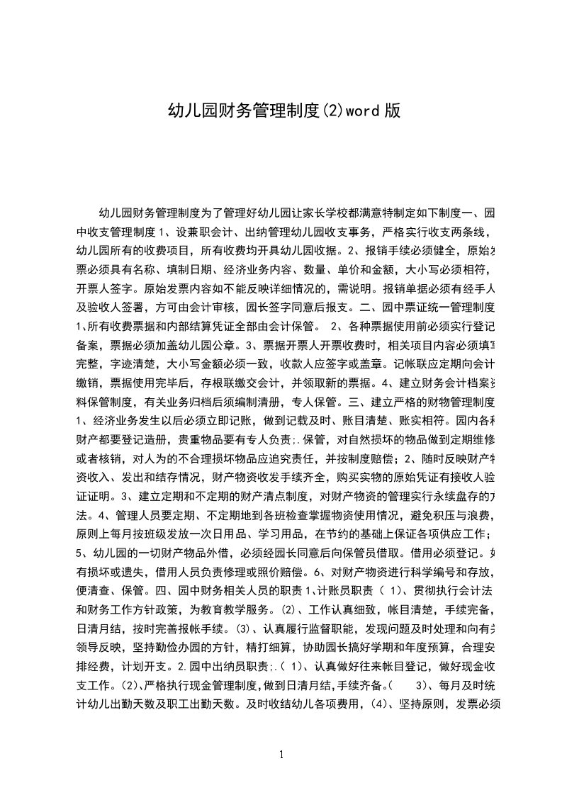 幼儿园财务管理制度为加强幼儿园财务管理,严格财经纪律,确保幼儿园财务核算的客观性、合法性、规范性,提高幼儿园资金的使用效益,现根据中华人民共和国会计法、企业会计准则、企业财务通则等财经法规,结合各园具体情况制定本管理制度。