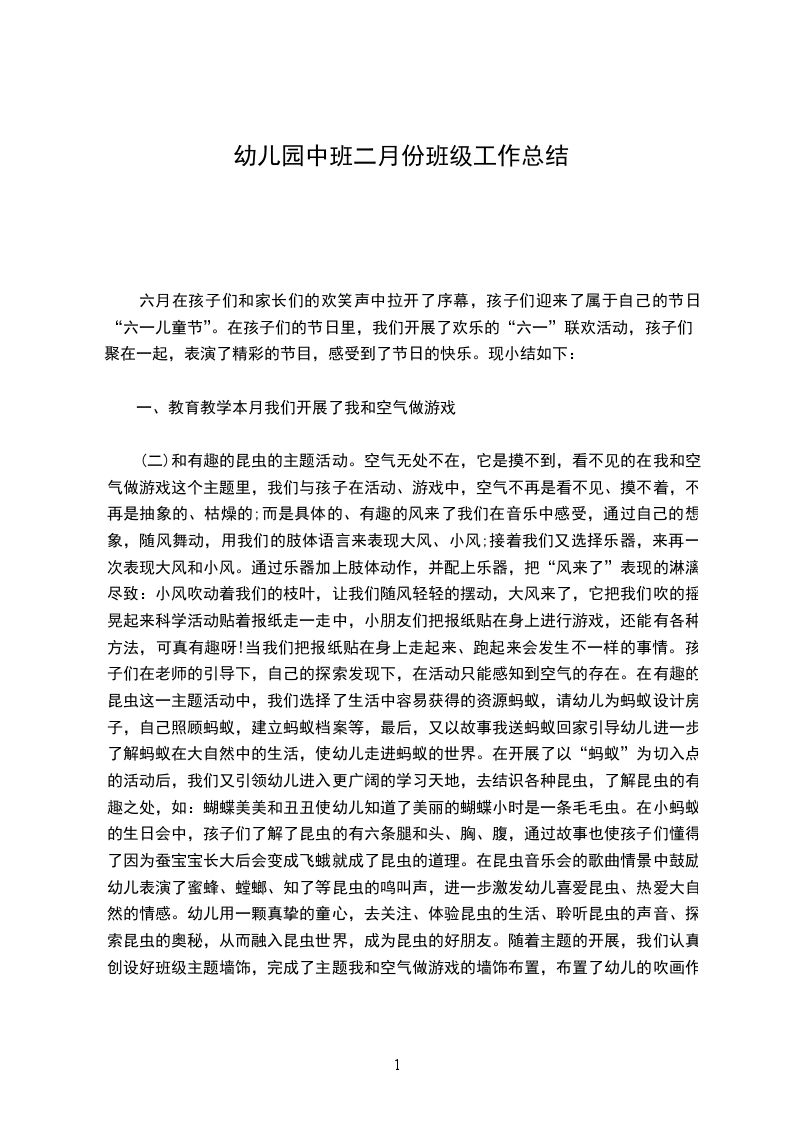 (二)和有趣的昆虫的主题活动。空气无处不在,它是摸不到,看不见的在我和空气做游戏这个主题里,我们与孩子在活动、游戏中,空气不再是看不见、摸不着,不再是抽象的、枯燥的;而是具体的、有趣的风来了我们在音乐中感受,通过自己的想象,随风舞动,用我们的肢体语言来表现大风、小风;接着我们又选择乐器,来再一次表现大风和小风。通过乐器加上肢体动作,并配上乐器,把“风来了”表现的淋漓尽致:小风吹动着我们的枝叶,让我们随风轻轻的摆动,大风来了,它把我们吹的摇晃起来科学活动贴着报纸走一走中,小朋友们把报纸贴在身上进行游戏,还能有各种方法,可真有趣呀!当我们把报纸贴在身上走起来、跑起来会发生不一样的事情。孩子们在老师的引导下,自己的探索发现下,在活动只能感知到空气的存在。在有趣的昆虫这一主题活动中,我们选择了生活中容易获得的资源蚂蚁,请幼儿为蚂蚁设计房子,自己照顾蚂蚁,建立蚂蚁档案等,最后,又以故事我送蚂蚁回家引导幼儿进一步了解蚂蚁在大自然中的生活,使幼儿走进蚂蚁的世界。在开展了以“蚂蚁”为切入点的活动后,我们又引领幼儿进入更广阔的学习天地,去结识各种昆虫,了解昆虫的有趣之处,如:蝴蝶美美和丑丑使幼儿知道了美丽的蝴蝶小时是一条毛毛虫。在小蚂蚁的生日会中,孩子们了解了昆虫的有六条腿和头、胸、腹,通过故事也使孩子们懂得了因为蚕宝宝长大后会变成飞蛾就成了昆虫的道理。在昆虫音乐会的歌曲情景中鼓励幼儿表演了蜜蜂、螳螂、知了等昆虫的鸣叫声,进一步激发幼儿喜爱昆虫、热爱大自然的情感。幼儿用一颗真挚的童心,去关注、体验昆虫的生活、聆听昆虫的声音、探索昆虫的奥秘,从而融入昆虫世界,成为昆虫的好朋友。随着主题的开展,我们认真创设好班级主题墙饰,完成了主题我和空气做游戏的墙饰布置,布置了幼儿的吹画作品及幼儿用气球制作的动物。在主题有趣的昆虫的主题墙中,则布置了幼儿绘画的蚂蚁王国情境及绘画的线描画昆虫。