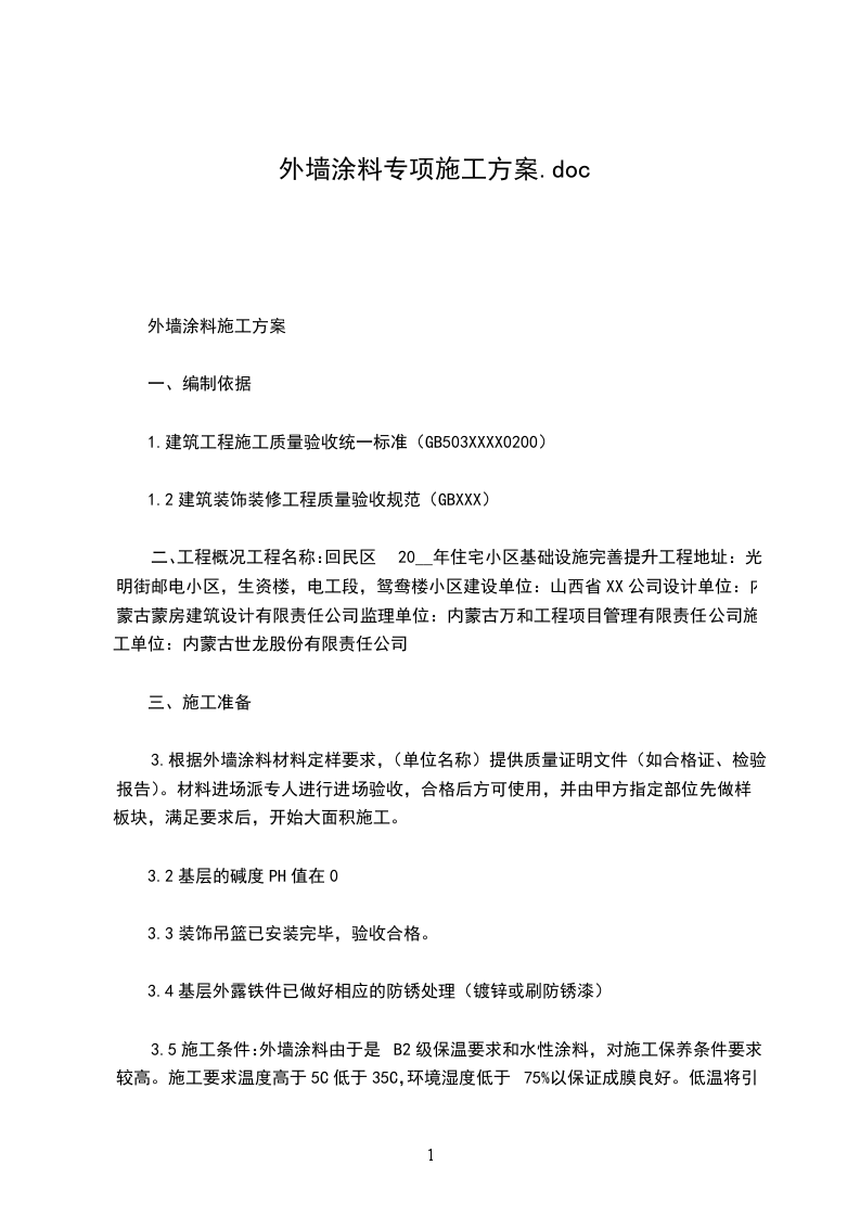 外墙涂料施工方案