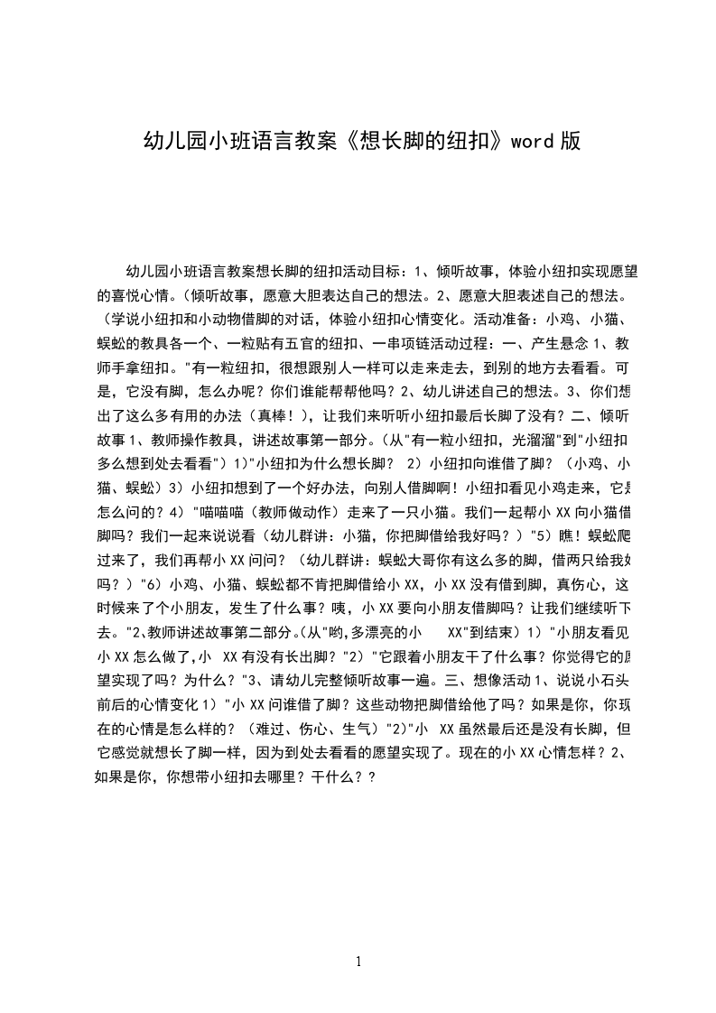 一、导入(出示不开心的小石头)“看,小石头怎么啦?它为什么不开心?”(幼儿猜猜然后听听小石头的讲述)“原来,小石头也想跟别人一样可以到别的地方看看,可是它没有脚怎么办?”(幼儿讲述自己的想法)过渡:“那,这块想长脚的石头到底是怎么做的?最后长脚了没有,我们一起来看看。”