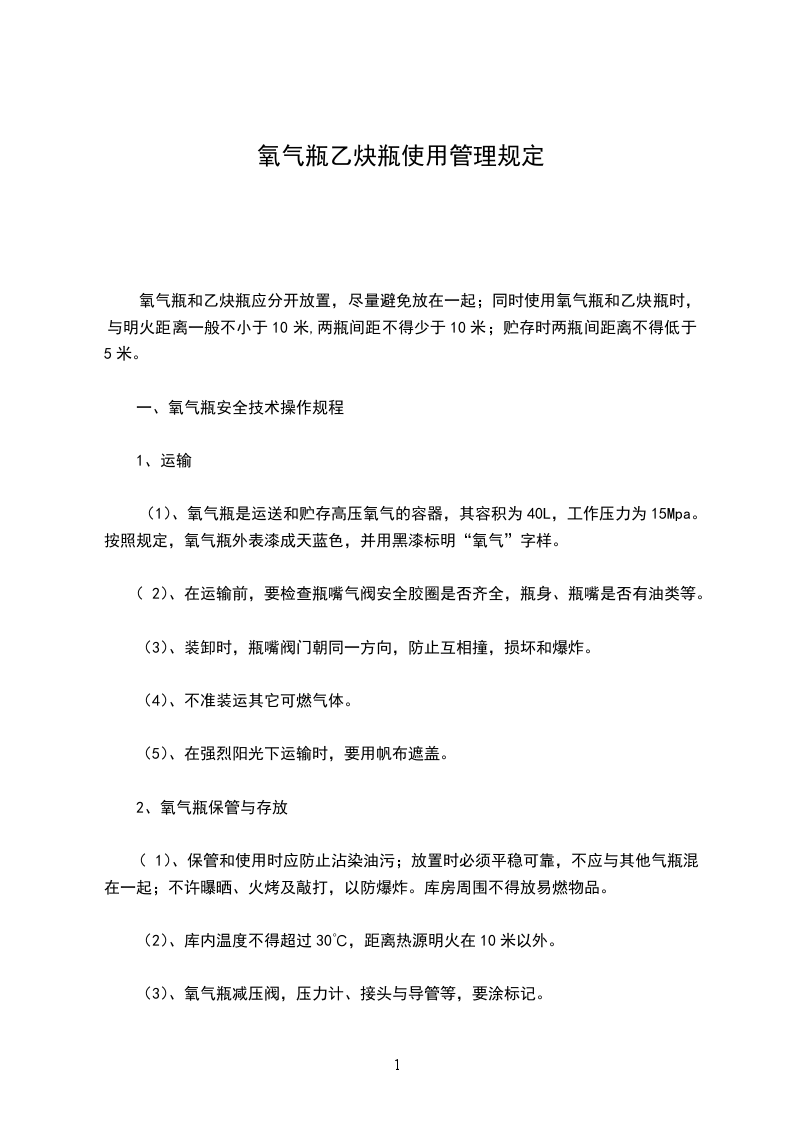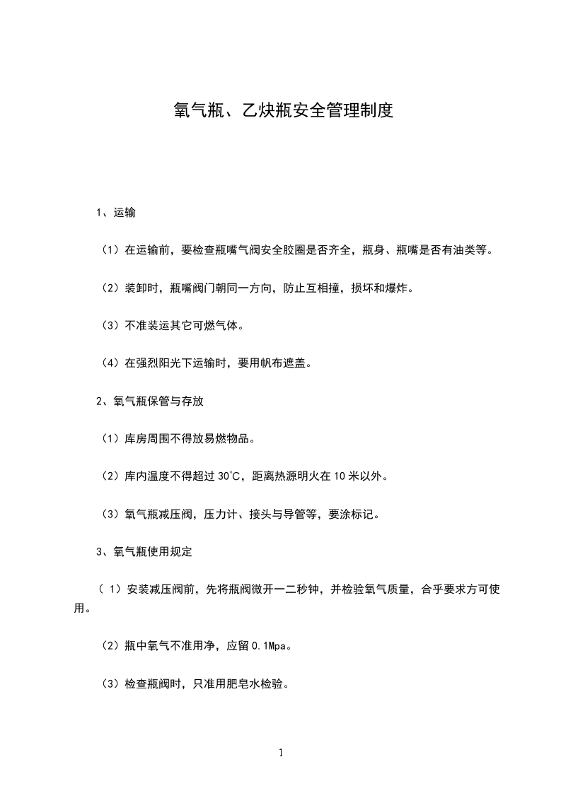 (二)、气瓶安全管理职责分工:(1)、供应公司负责氧气瓶的外委技术检验和充装前安全检查。乙炔气瓶应符合溶解乙炔气瓶安全监察规定的有关规定。