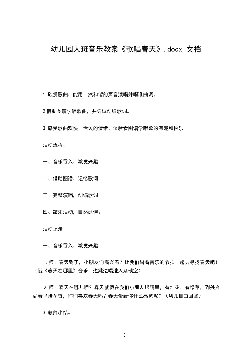 2能根据歌词内容创编动作进行表演,萌发对春天喜爱的情感。