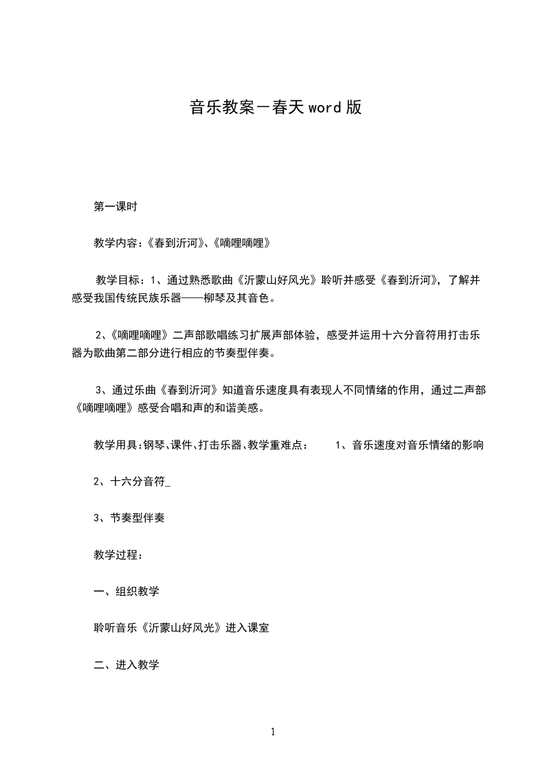 春天教案活动目标:感受歌曲优美的旋律,理解歌词内容,学唱歌曲。