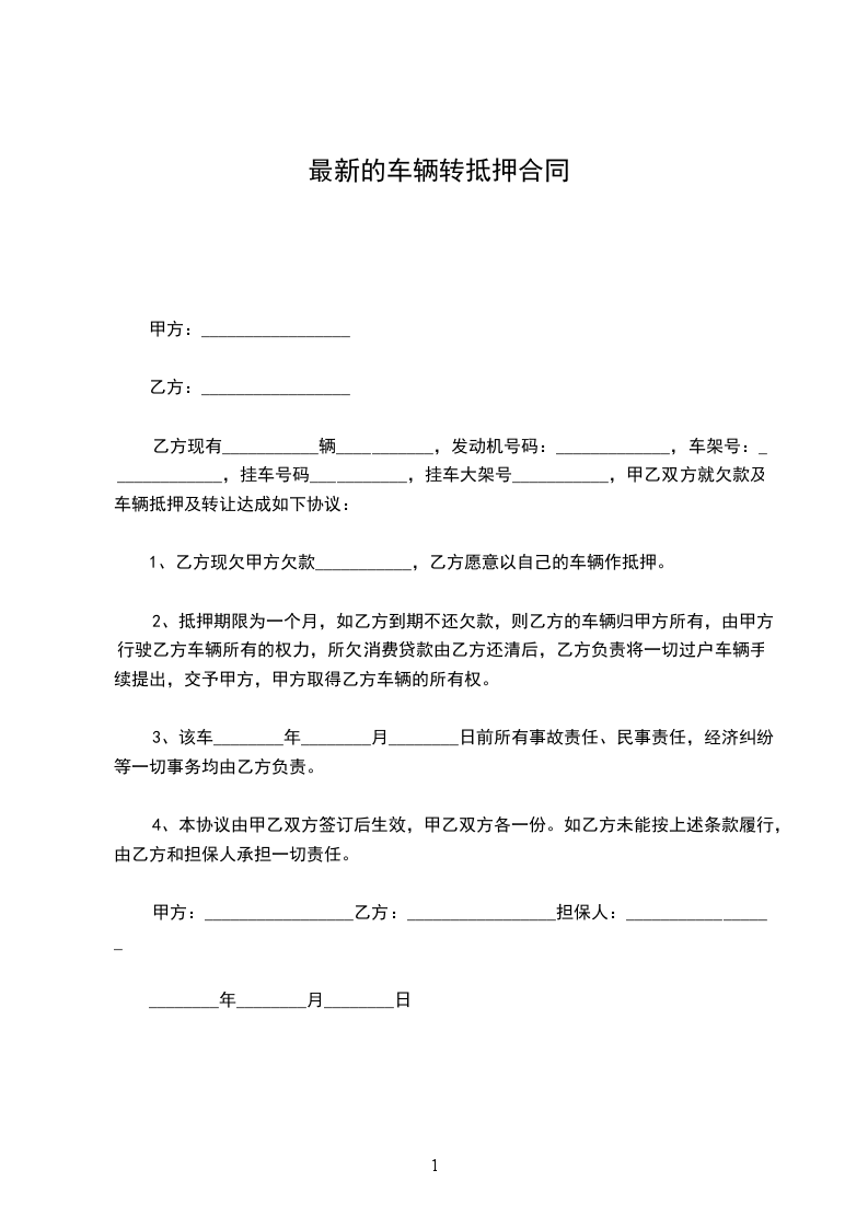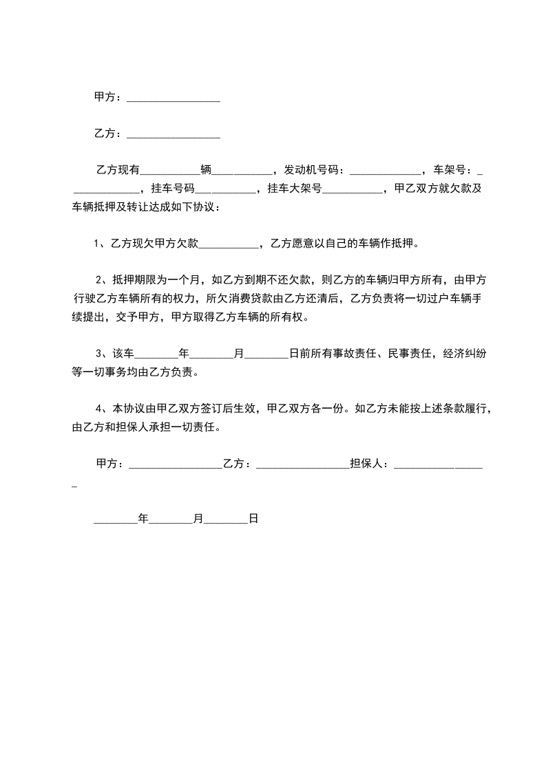 1、乙方现欠甲方欠款___________,乙方愿意以自己的车辆作抵押。