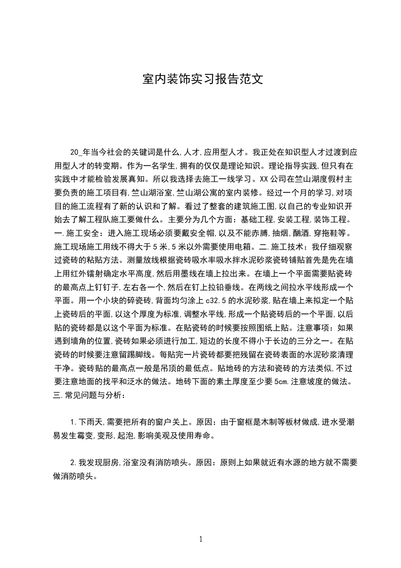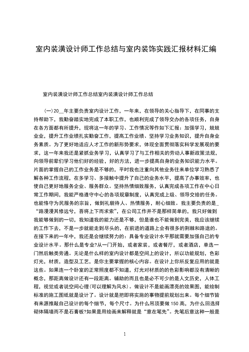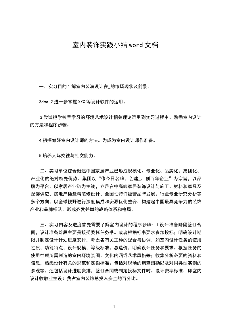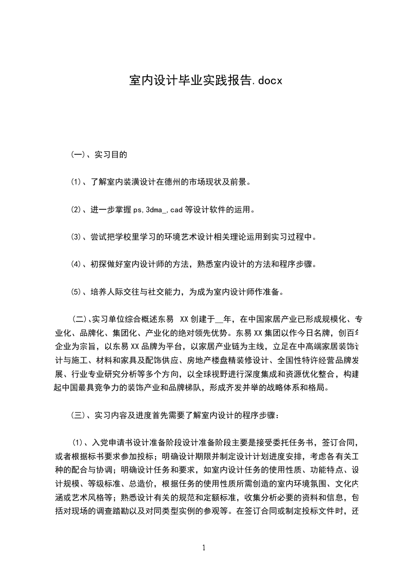 一、实习目的1解室内装潢设计在_的市场现状及前景。