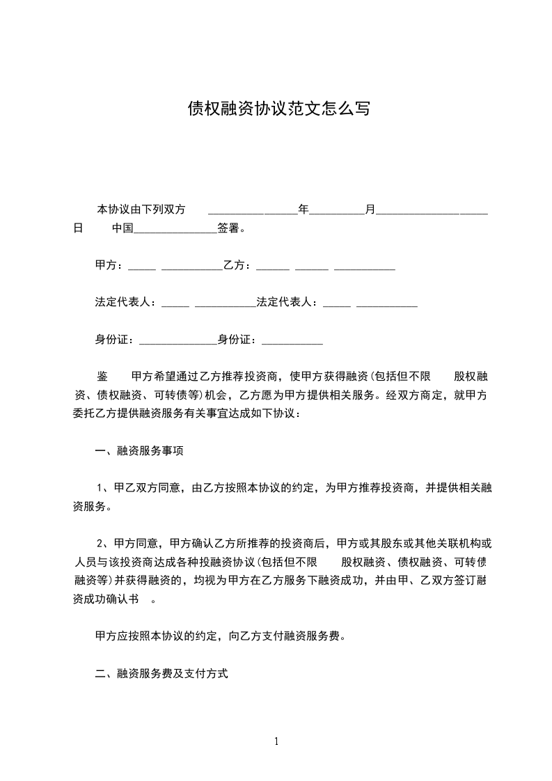 鉴于甲方希望通过乙方推荐投资商,使甲方获得融资(包括但不限于股权融资、债权融资、可转债等)机会,乙方愿为甲方提供相关服务。经双方商定,就甲方委托乙方提供融资服务有关事宜达成如下协议: