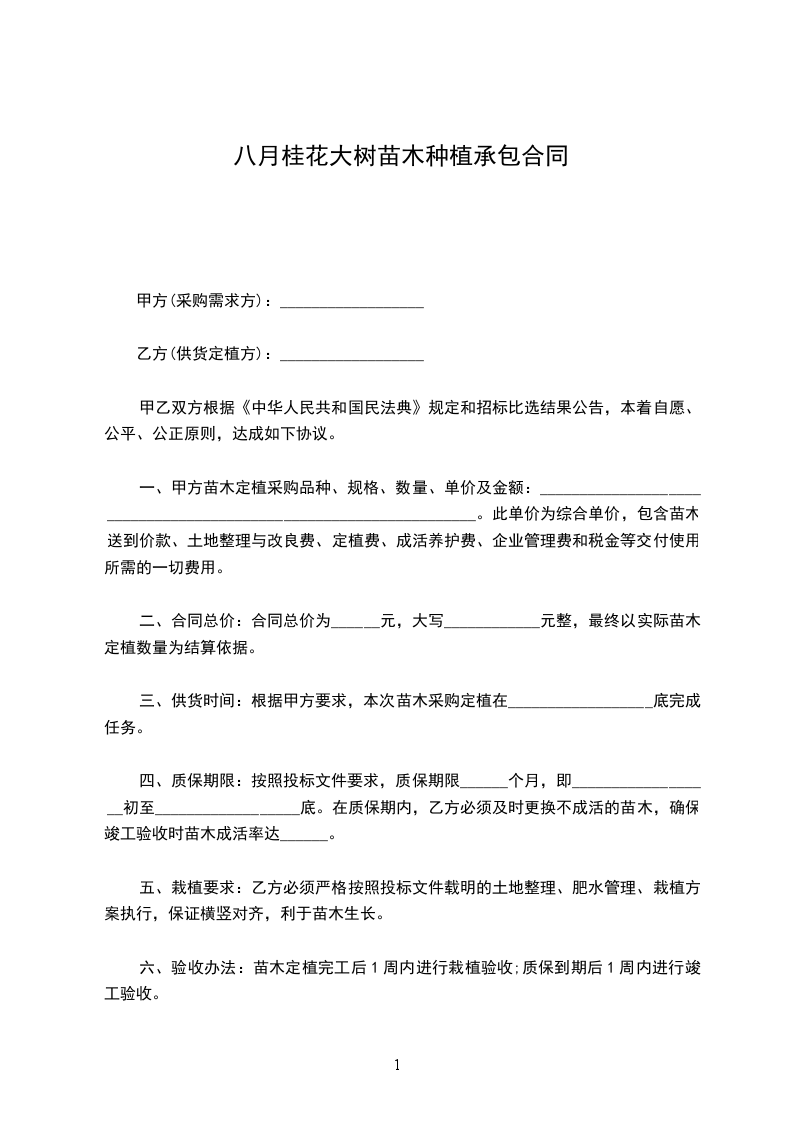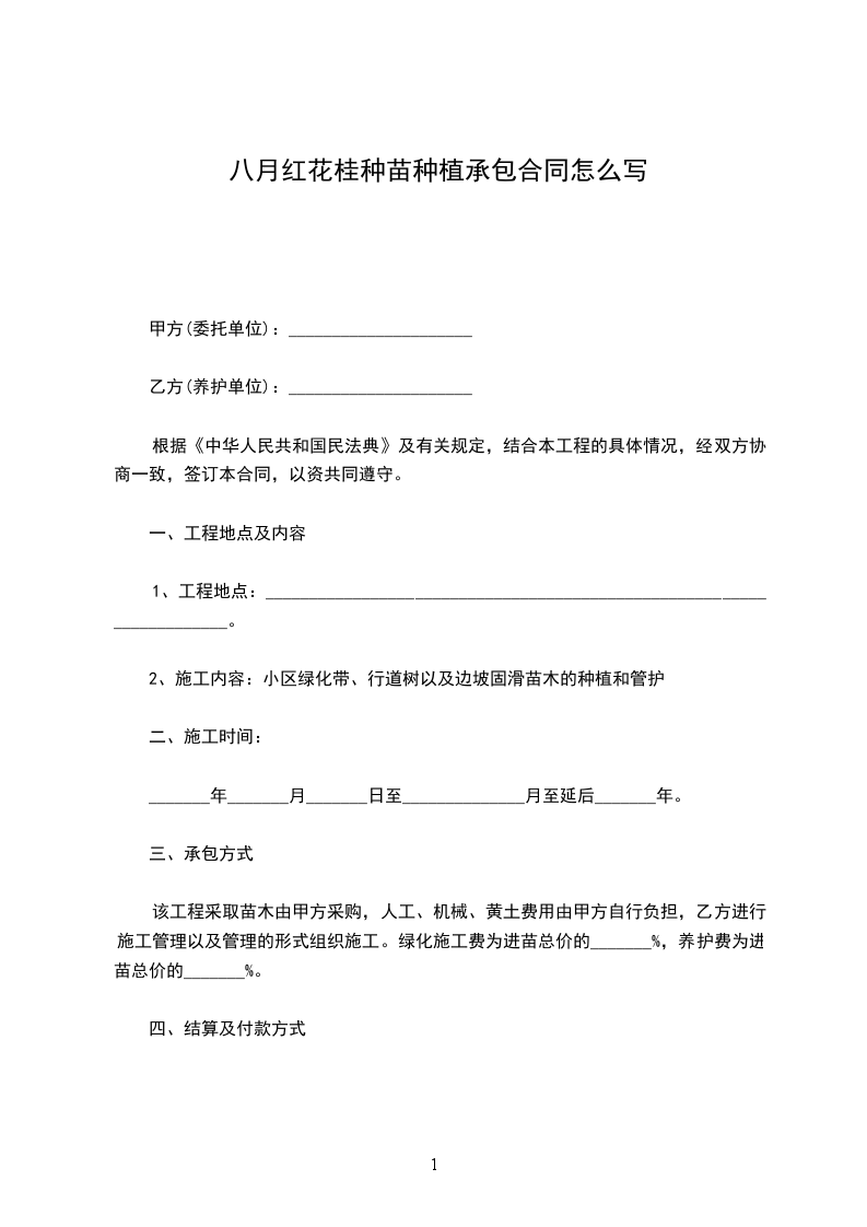 八月红花桂种苗种植承包合同怎么写