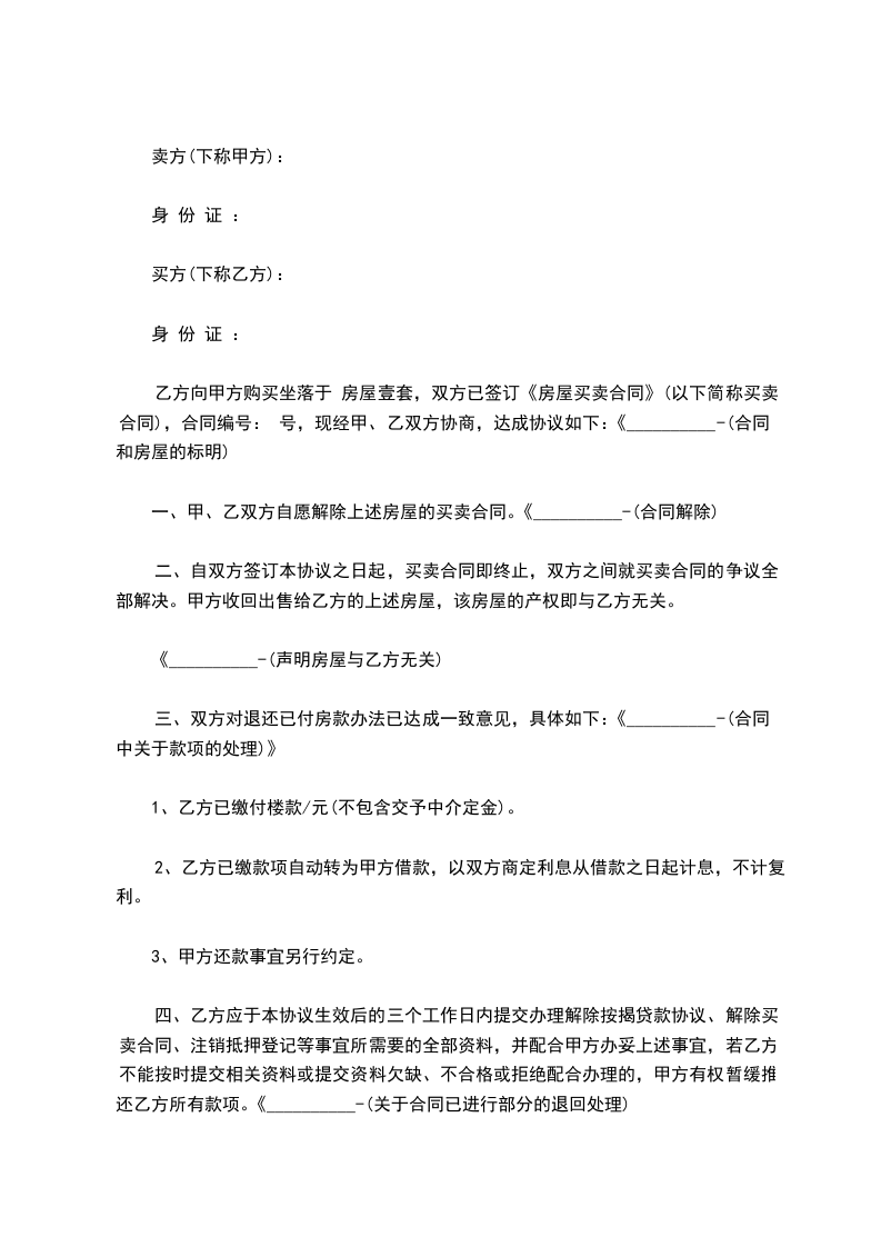 五、原合同终止后,双方同意就原合同事项互不追究法律责任。