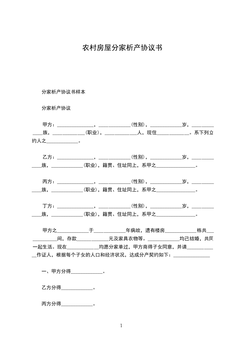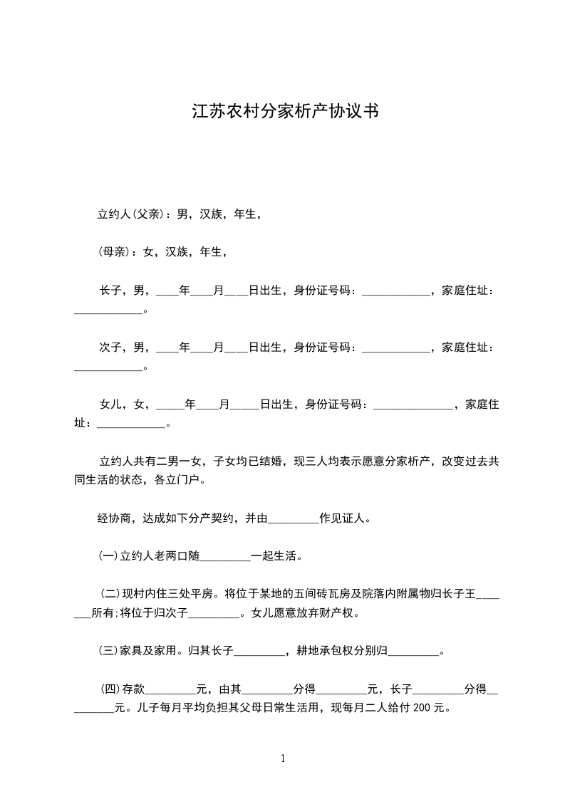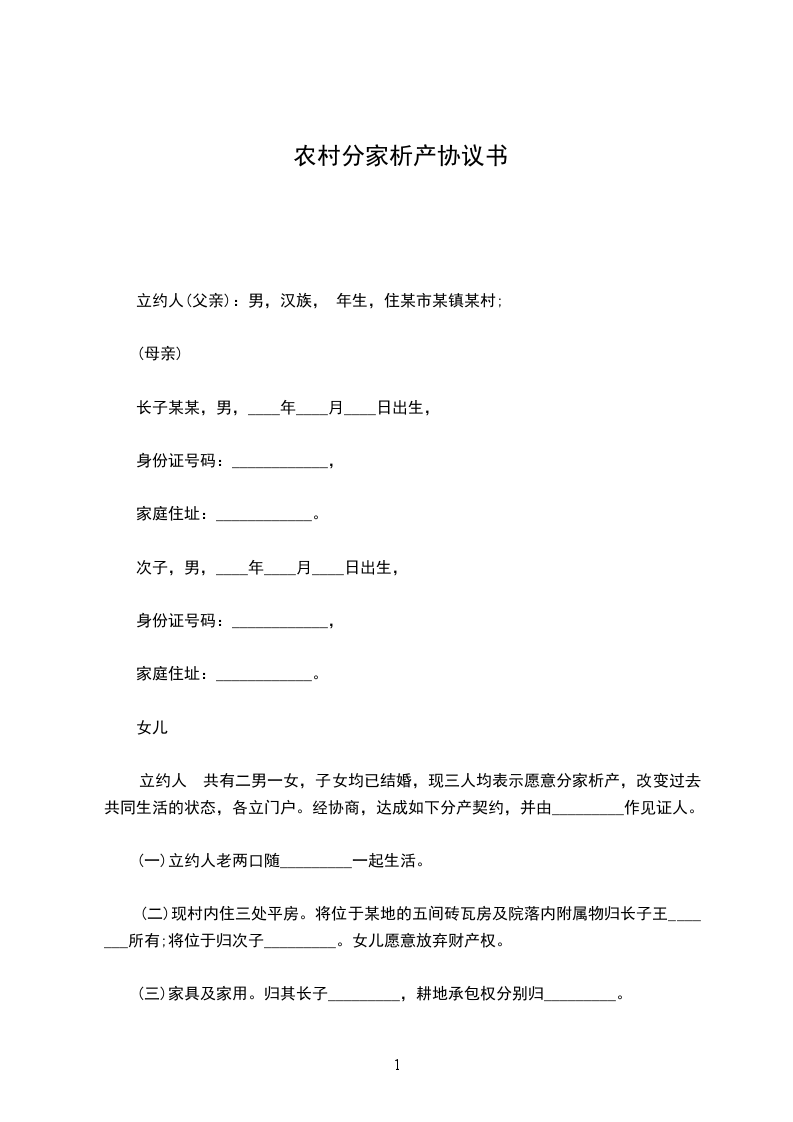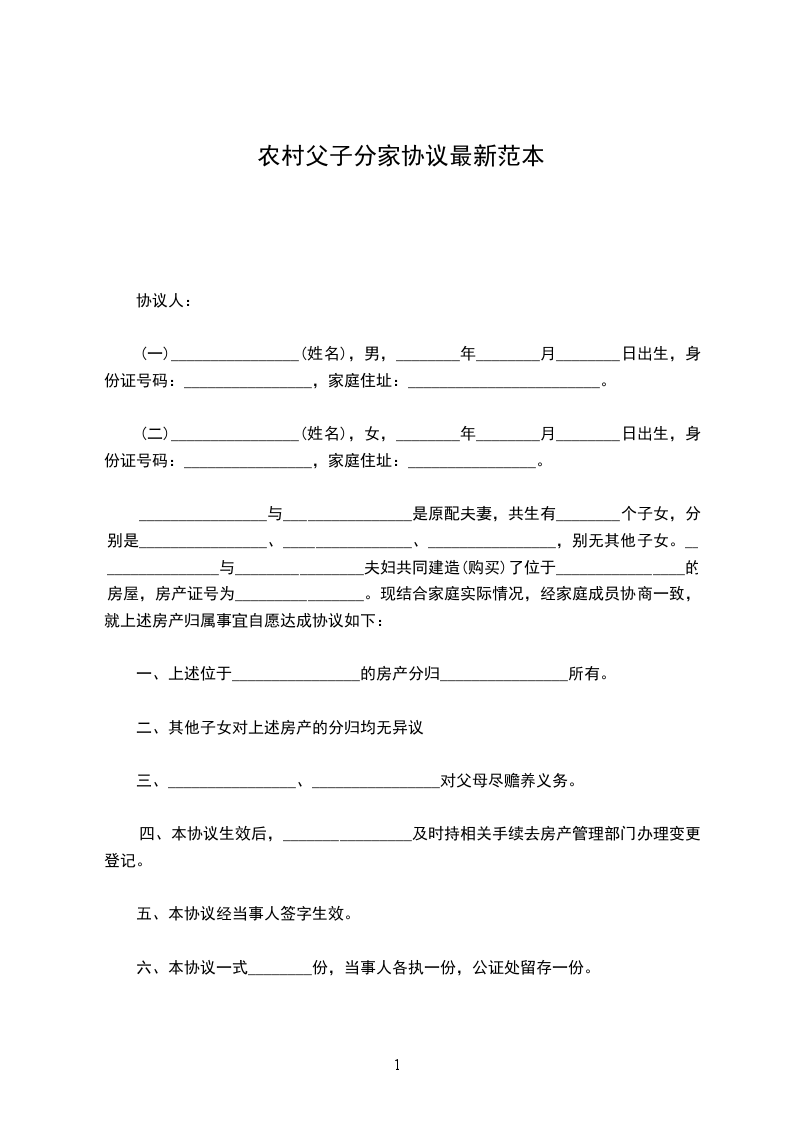 五、本协议共1页一式三份,父和母、甲、乙各执一份,一经签字按手印,兄弟双方对以上协议均不得反悔。未尽事宜兄弟二人协商解决。