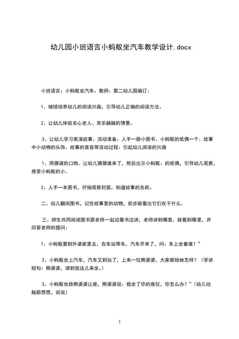 幼儿园小班语言小蚂蚁坐汽车教学设计.docx