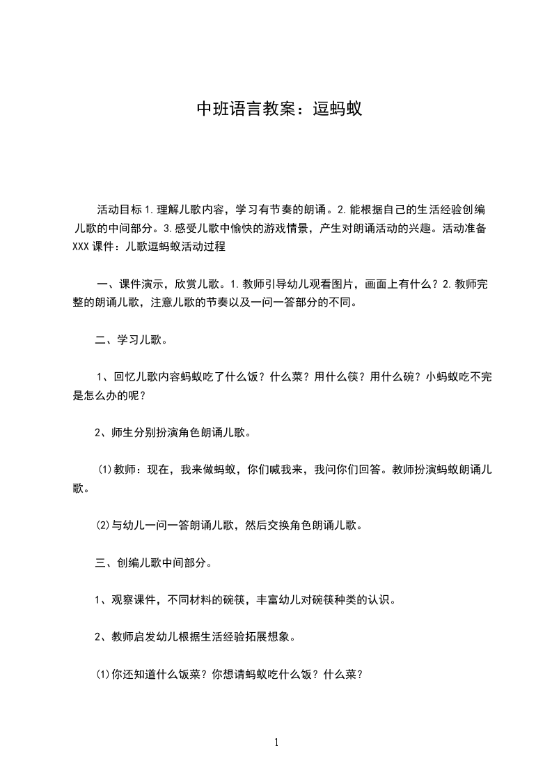 中班语言教案:逗蚂蚁