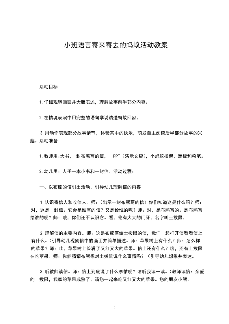 小班语言寄来寄去的蚂蚁活动教案