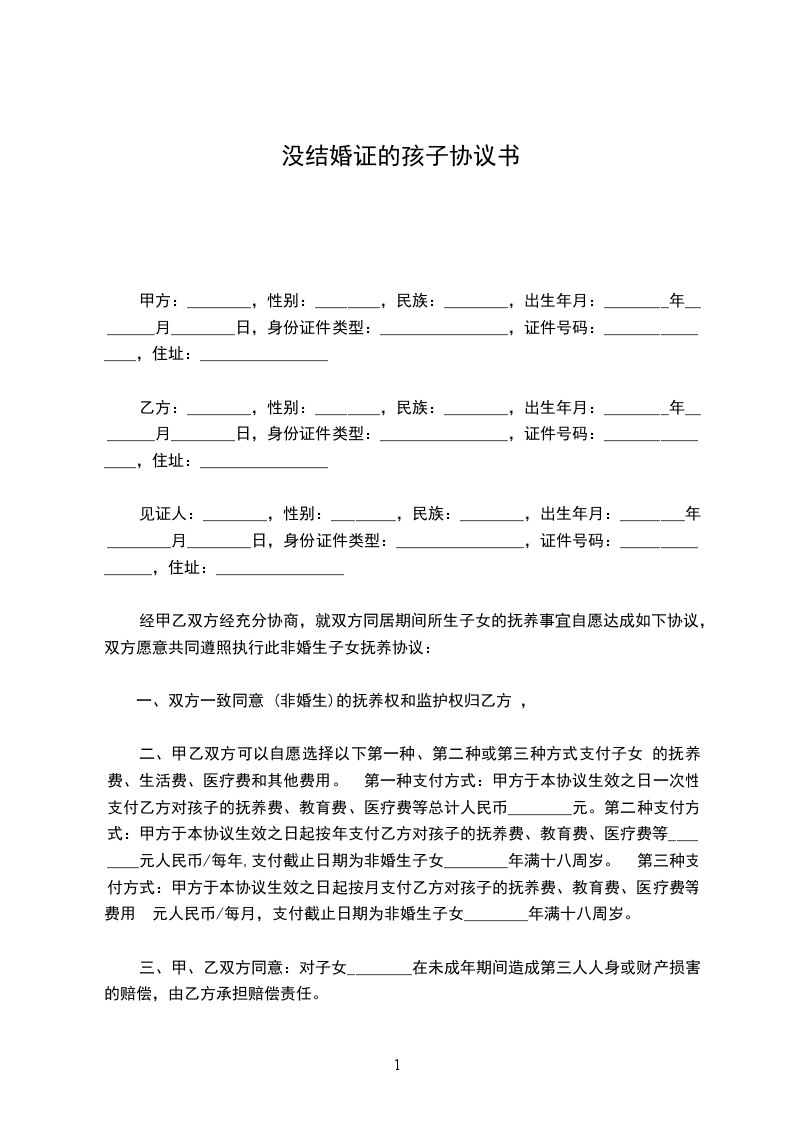 男方(甲方):_______________汉族,____ 年 _____ 月 _____ 日出生,身份证号:_______________
