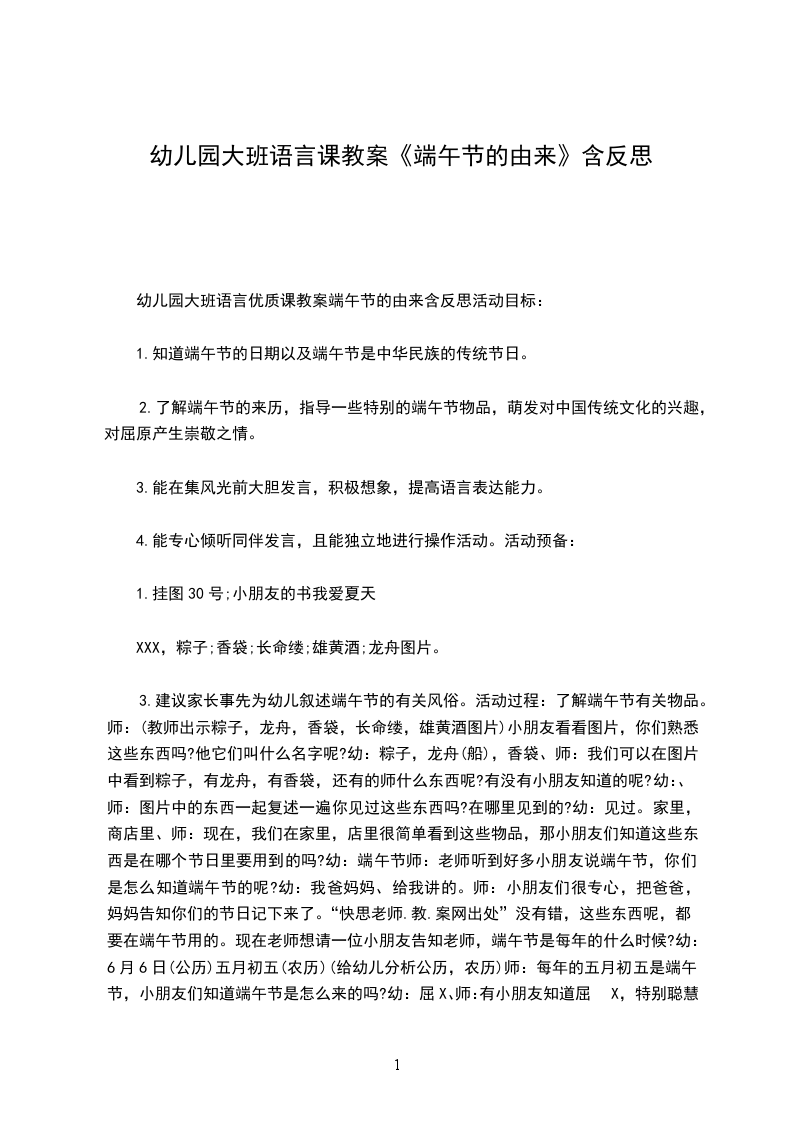 幼儿园大班语言优质课教案端午节的由来含反思活动目标: