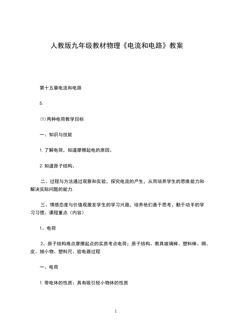 2、原子结构难点摩擦起点的实质考点电荷;原子结构。教具玻璃棒、塑料棒、绸、皮、细小物、塑料尺、验电器过程