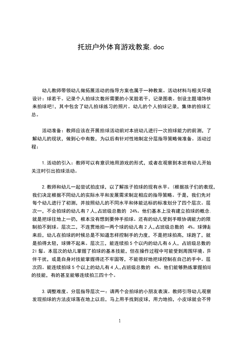 幼儿教师带领幼儿做拓展活动的指导方案也属于一种教案。活动材料与相关环境设计:球若干。记录个人拍球次数所需要的小笑脸若干,记录图表。创设主题墙饰快来拍球吧!,其中包含了幼儿拍球练习的照片。幼儿的个人拍球记录,集体的拍球汇总。