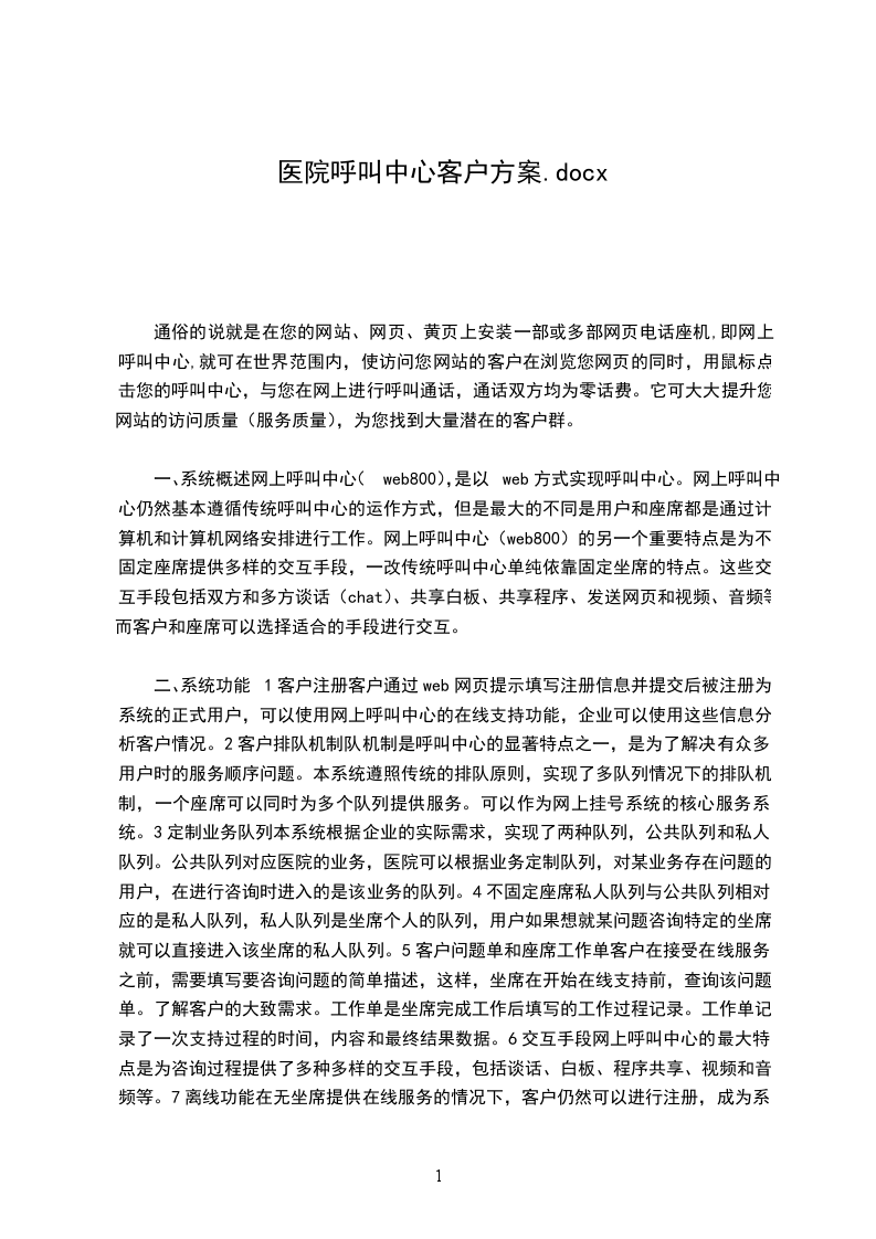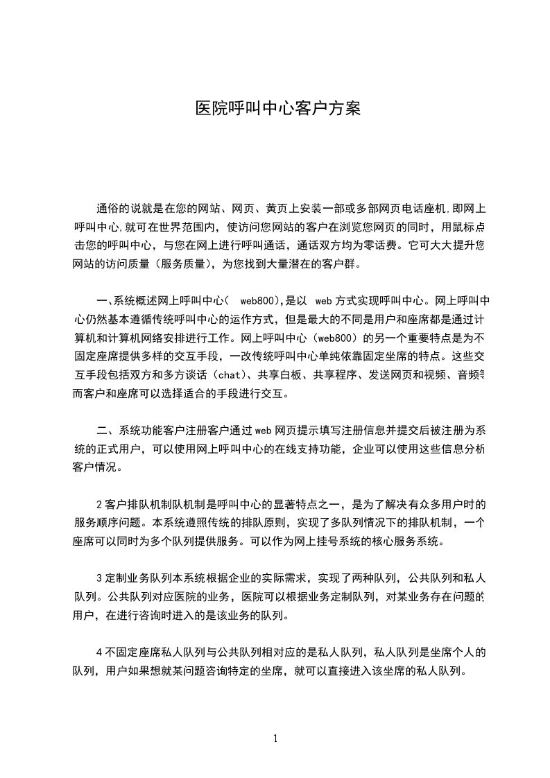 二、系统功能客户注册客户通过web网页提示填写注册信息并提交后被注册为系统的正式用户,可以使用网上呼叫中心的在线支持功能,企业可以使用这些信息分析客户情况。