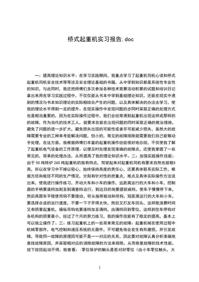4..3起重机承载能力:A、起重机的结构和机械部件的设计全部应考虑承受动静荷载以及由于碰击所引起的外力B、起重机的大小车运行机构的设计应允许在空载全速运行时,在断掉电源的情况下与缓冲器碰撞,而不造成设备损坏。
