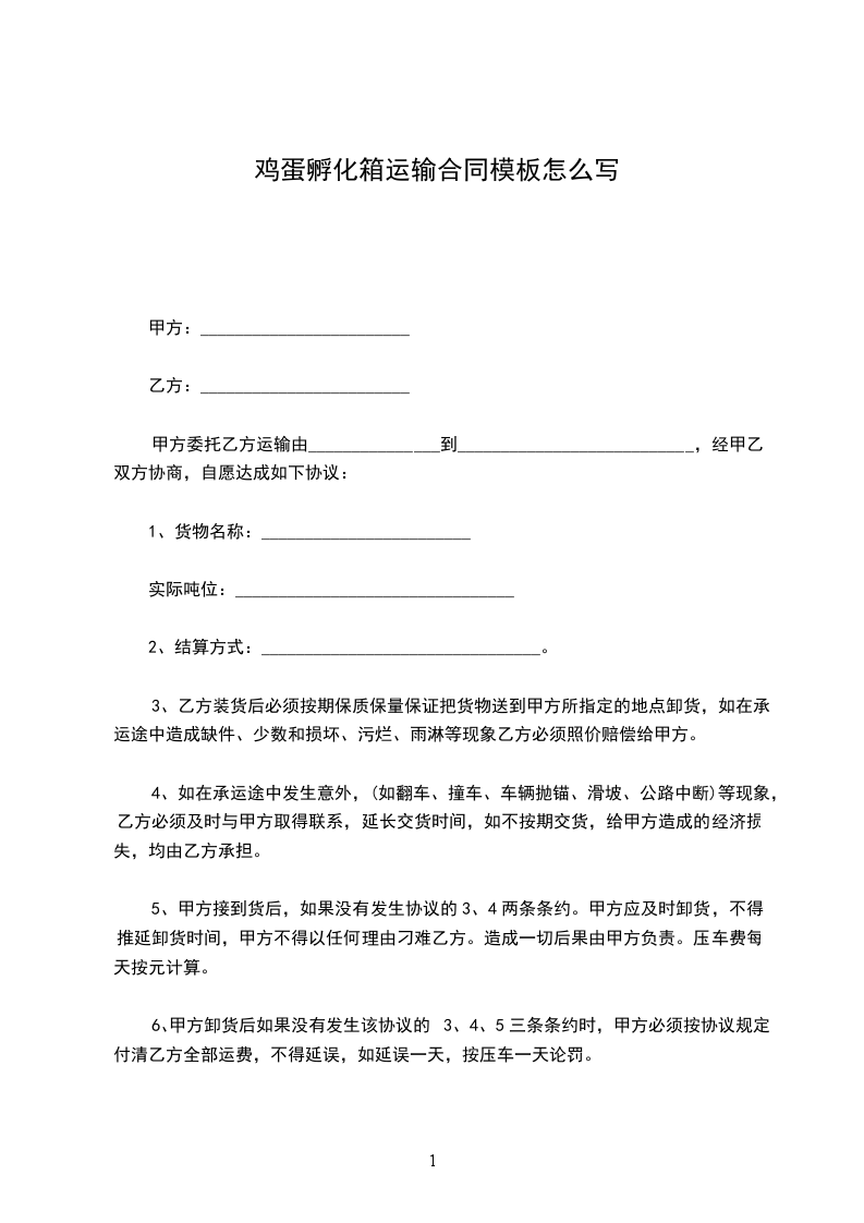 鸡蛋孵化箱运输合同模板怎么写