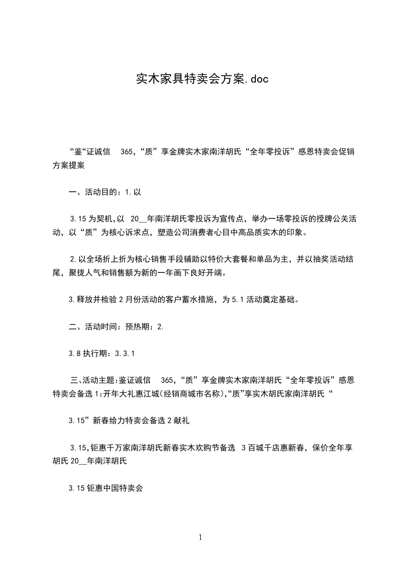 “鉴“证诚信365,“质”享金牌实木家南洋胡氏“全年零投诉”感恩特卖会促销方案提案