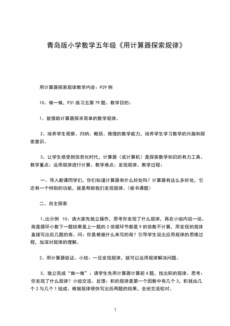 一、导入新课同学们,你们知道计算器有什么好处吗?计算器有这么多好处,它还有一个特别的功能,就是帮助我们发现规律。(板书课题)