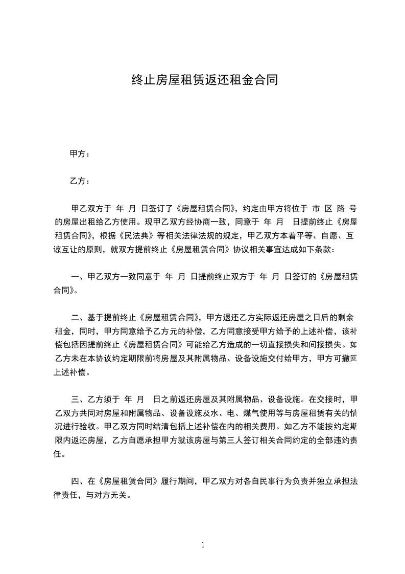 四、与相关费用结算清楚后甲方向乙方退回所收共计________元的押金。