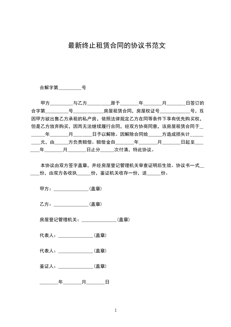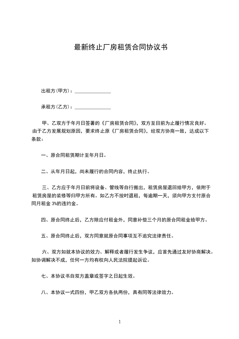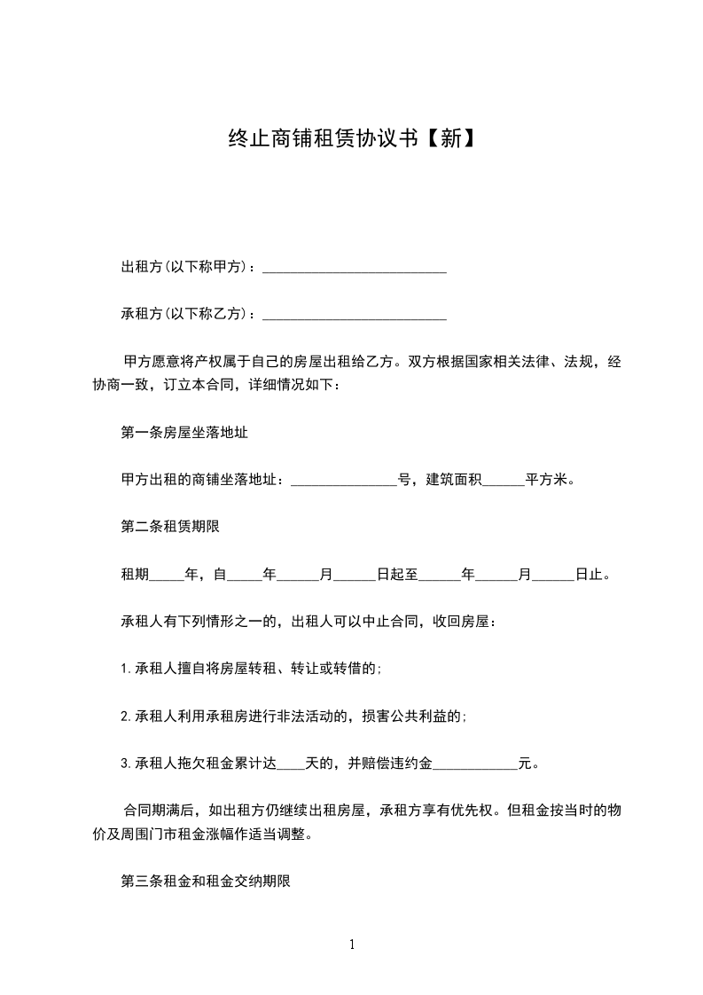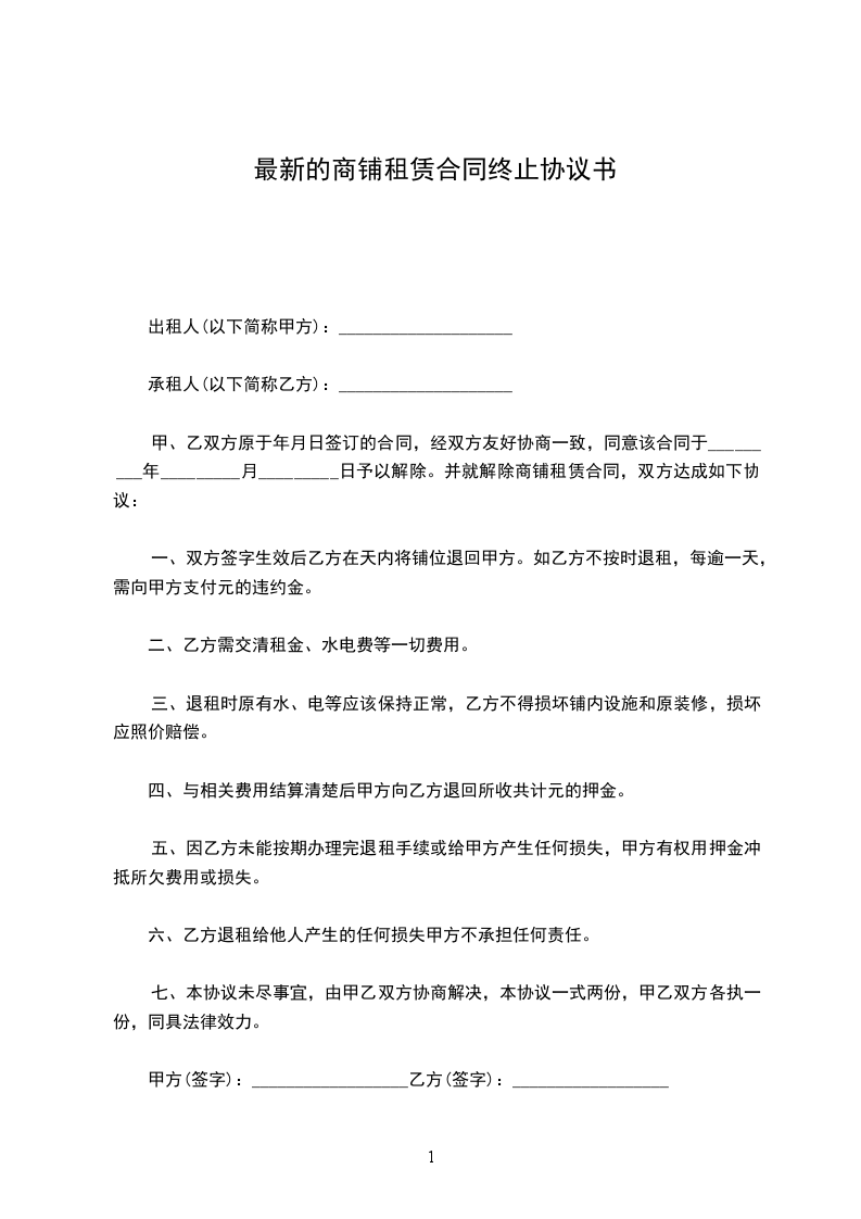 一、双方于签订本协议书时起即终止原租赁关系。