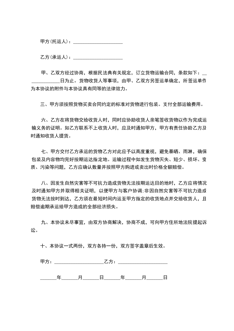 1、要求承运方按照约定的时间将____________运到指定地点;
